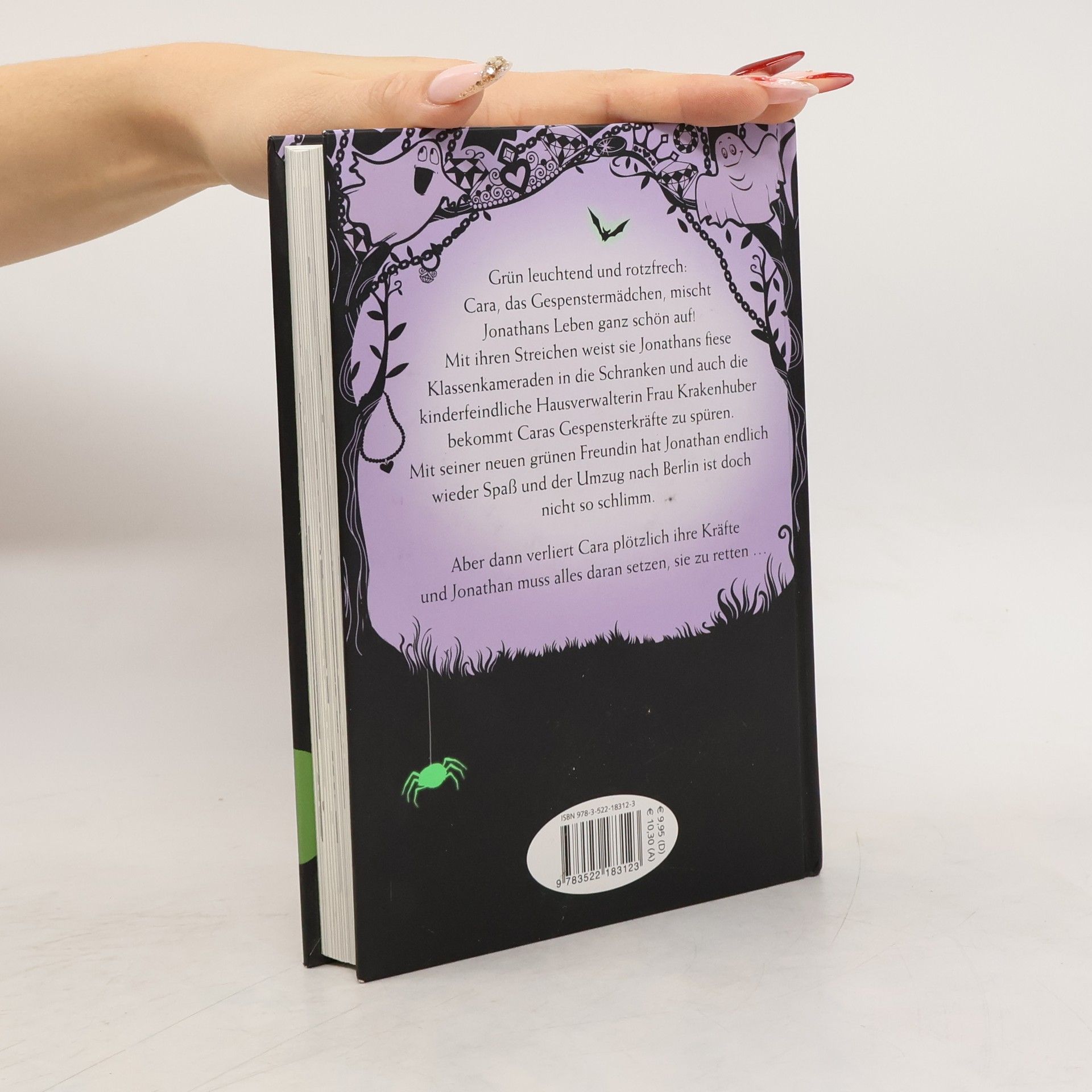 Grün leuchtend und rotzfrech: Cara, das Gespenstermädchen, mischt Jonathans Leben ganz schön auf! Mit ihren Streichen weist sie Jonathans fiese Klassenkameraden in die Schranken und auch die kinderfeindliche Hausverwalterin Frau Krakenhuber bekommt Caras Gespensterkräfte zu spüren. Mit seiner neuen grünen Freundin hat Jonathan endlich wieder Spaß und der Umzug nach Berlin ist doch nicht so schlimm. Aber dann verliert Cara plötzlich ihre Kräfte und Jonathan muss alles daran setzen, sie zu retten ...