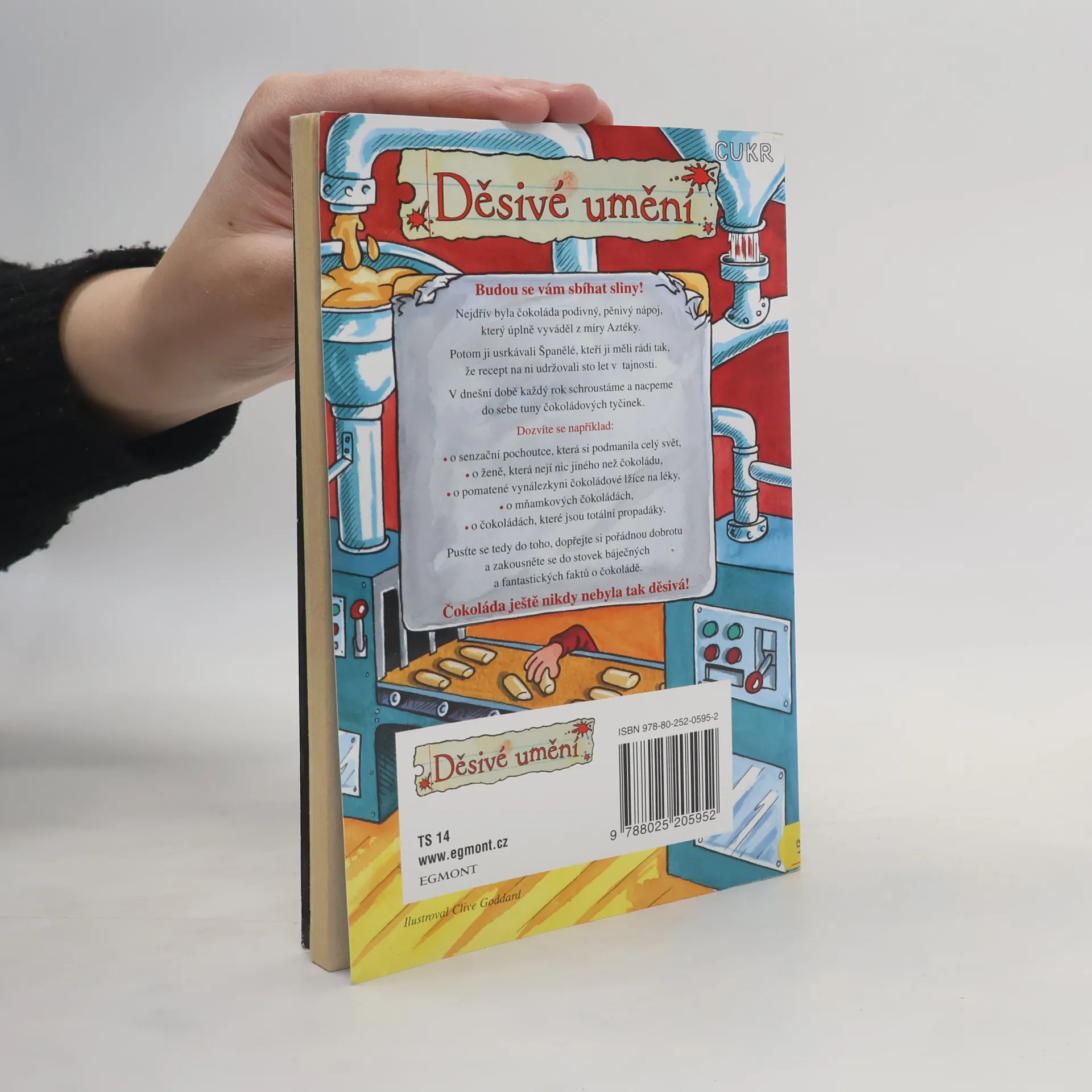 O čem se vám učitelé neodvažují říct. Nejdřív byla čokoláda podivný, pěnivý nápoj, na kterém ujížděli Aztékové. Potom ji usrkávali Španělé, které uchvátila natolik, že recept na ni udržovali sto let v tajnosti před zbytkem Evropy. My dnes každý rok schroustáme a nacpeme do sebe tuny čokoládových tyčinek. O tom všem je tato knížka. Dozvíte se v ní například o senzační pochoutce, která si podmanila celý svět, o ženě, která nejí nic jiného než čokoládu, ale i o druzích čokolády, které u zákazníků totálně propadly. Zakousněte se s chutí do stovek báječných a fantastických faktů o čokoládě. Umění nikdy nebylo tak děsivé!