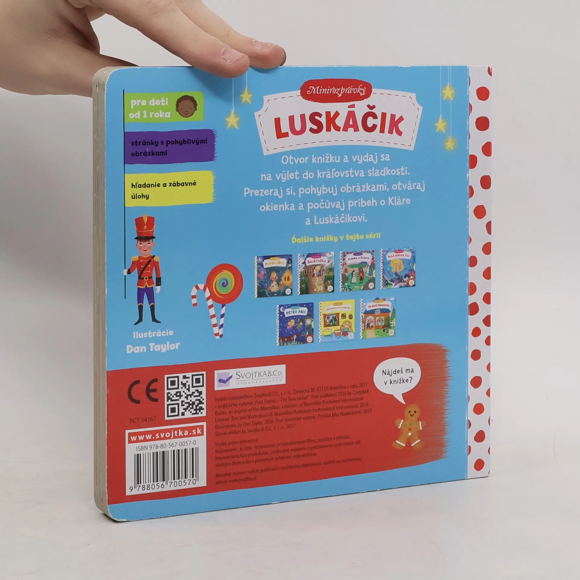 Táto veršovaná minirozprávka je určená deťom od jedného roka. Má pevné stránky s pohyblivými prvkami, takže si deti môžu príbeh oživiť a precvičiť si pršteky.