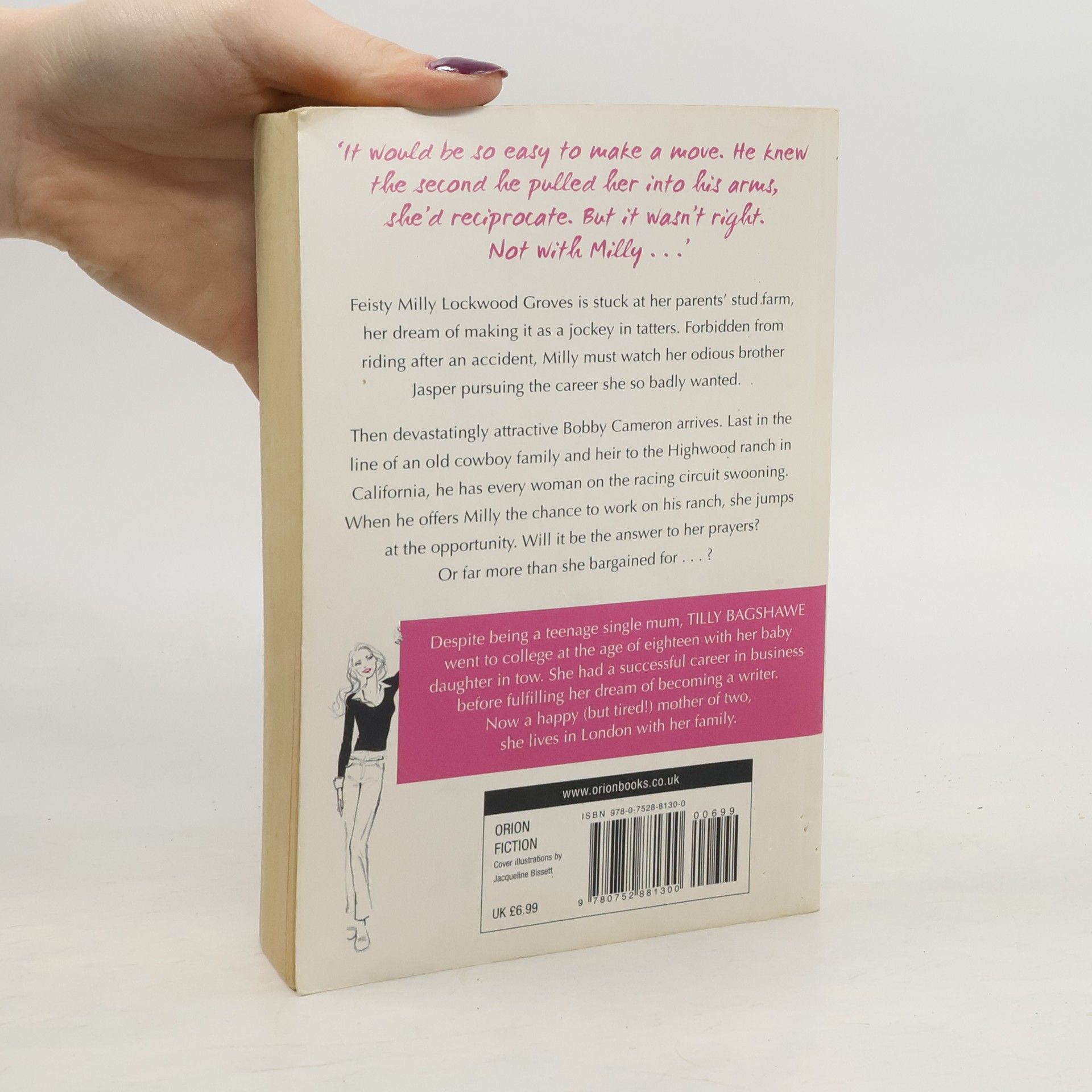 A wickedly sexy romp from one of the most exciting voices in commercial fiction - 'Pure guilty pleasure' Heat Milly Lockwood Groves is stuck at her parents' racing stables and stud farm outside Newmarket, her dreams of making it as a champion jockey in tatters. Her father has forbidden her to ride after a fall left her hospitalised - and there's no arguing with him. As a millionaire racehorse breeder and bastion of the male dominated racing fraternity, he would prefer Milly took up more ladylike pursuits, and left the riding to her brother, Jasper. Although Milly has more talent in her left riding boot than the poisonous Jasper will ever have, her family are determined to fill Milly's life with cookery courses and debs' balls in London. But Milly's life is about to change with the arrival of Bobby Cameron, the most skilled horse-breaker in America. Milly, who previously has had no interest in males of the two-legged variety, develops a passionate crush on the blond, beautiful Bobby. When Bobby offers her the chance to spend a year on his Californian ranch, it's just too good an opportunity to refuse...