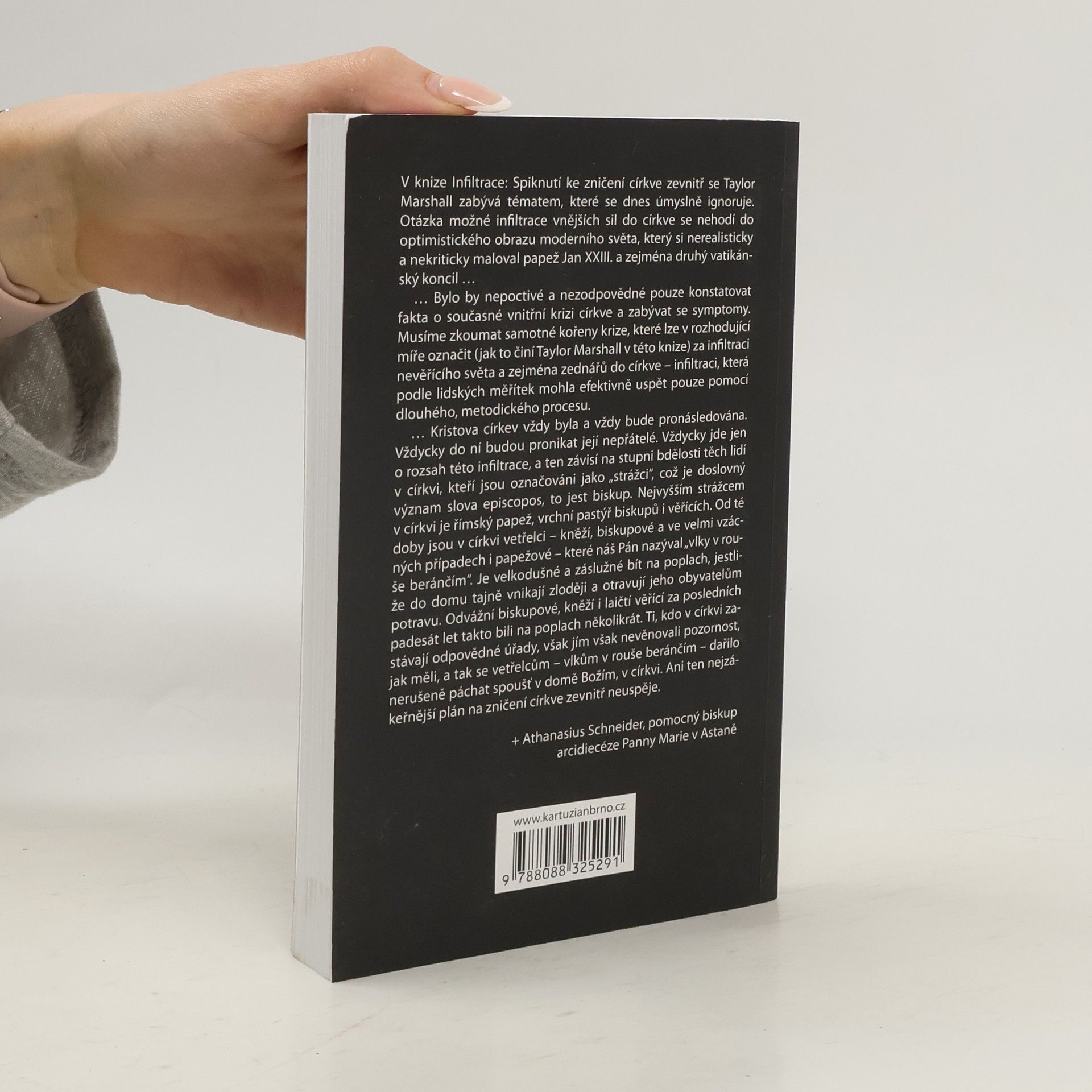 Spiknutí ke zničení církve zevnitř se Taylor Marshall zabývá tématem, které se dnes úmyslně ignoruje. Bylo by nepoctivé a nezodpovědné pouze konstatovat fakta o současné vnitřní krizi církve a zabývat se symptomy. Musíme zkoumat samotné kořeny krize, které lze v rozhodující míře označit za infiltraci nevěřícího světa a zejména zednářů do církve – infiltraci, která podle lidských měřítek mohla efektivně uspět pouze pomocí dlouhého, metodického procesu. Kristova církev vždy byla a vždy bude pronásledována. Vždycky do ní budou pronikat její nepřátelé. Nejvyšším strážcem v církvi je římský papež, vrchní pastýř biskupů i věřících. Od té doby jsou v církvi vetřelci – kněží, biskupové a ve velmi vzácných případech i papežové. Odvážní biskupové, kněží i laičtí věřící za posledních padesát let takto bili na poplach několikrát. Ti, kdo v církvi zastávají odpovědné úřady, však jím však nevěnovali pozornost, jak měli, a tak se vetřelcům – vlkům v rouše beránčím – dařilo nerušeně páchat spoušť v domě Božím, v církvi. Ani ten nejzákeřnější plán na zničení církve zevnitř neuspěje.