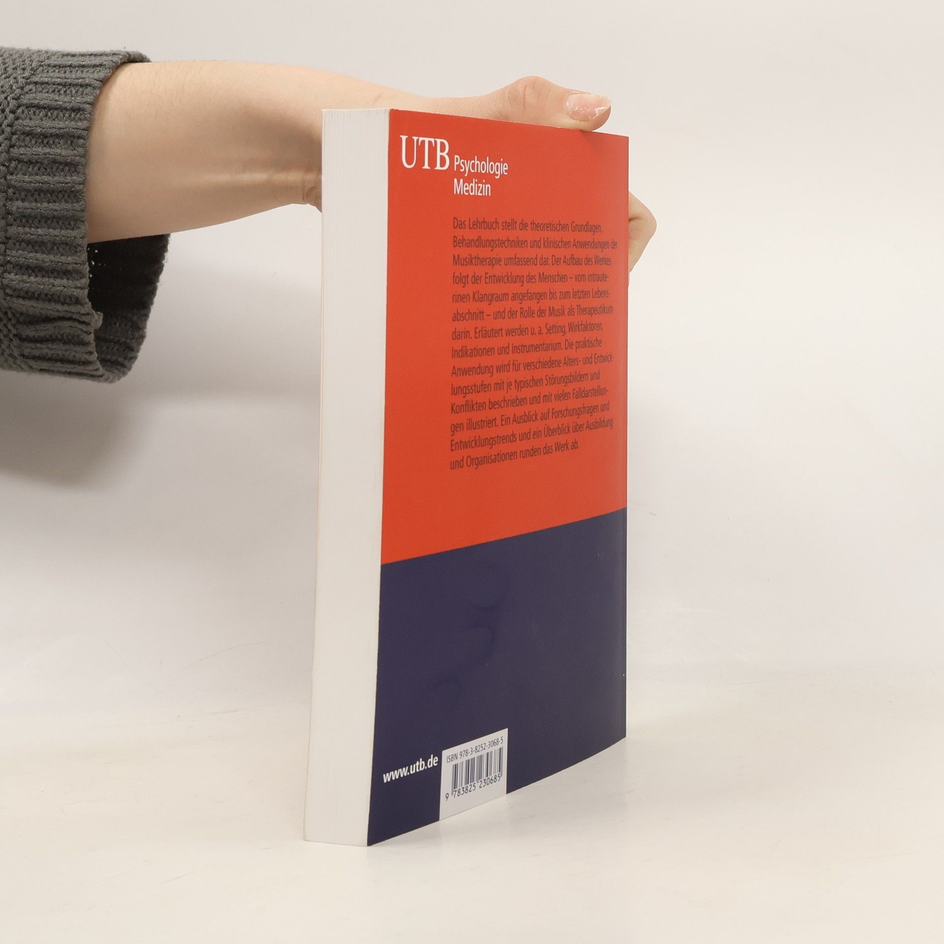 Das Lehrbuch stellt die theoretischen Grundlagen, Behandlungstechniken und klinischen Anwendungen der Musiktherapie umfassend dar. Der Aufbau des Werkes folgt der Entwicklung des Menschen - vom intrauterinen Klangraum angefangen bis zum letzten Lebensabschnitt - und der Rolle der Musik als Therapeutikum darin. Erläutert werden u. a. Setting, Wirkfaktoren, Indikationen und Instrumentarium. Die praktische Anwendung wird für verschiedene Alters- und Entwicklungsstufen mit je typischen Störungsbildern und Konflikten beschrieben und mit vielen Falldarstellungen illustriert. Ein Ausblick auf Forschungsfragen und Entwicklungstrends und ein Überblick über Ausbildung und Organisationen runden das Werk ab.