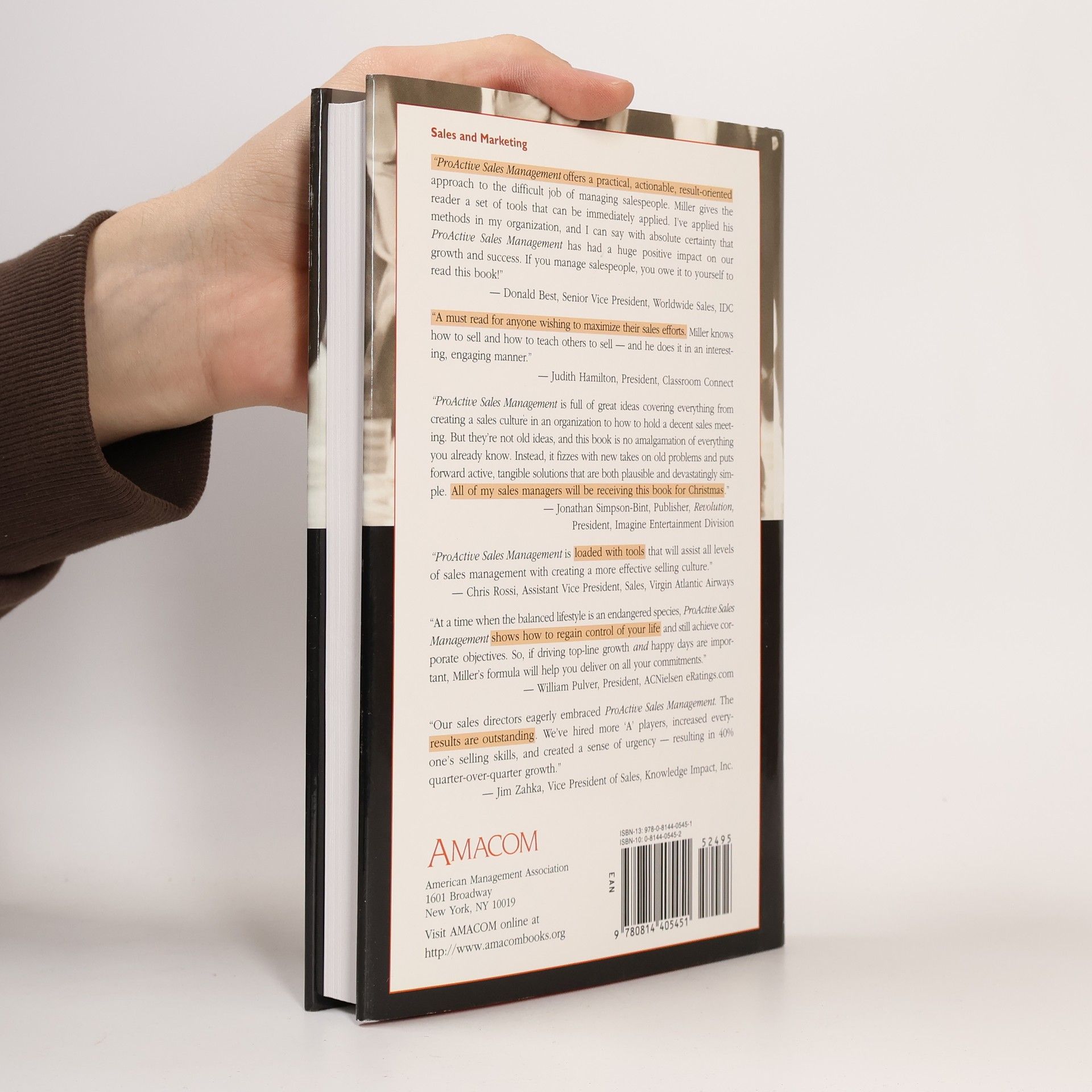 Today’s sales managers have to be quicker than ever, being more proactive about hiring the best performers and retaining them, multi-tasking, and managing complex sales processes in order to close more and more deals. This book provides readers with a proven method for managing the sales process as well as the salespeople. Packed with specific, field-tested techniques, ProActive Sales Management shows sales managers how • motivate a sales team• get their sales team to prospect and qualify• create a proactive sales culture• effectively coach and counsel up and down the sales organization• reduce reports to one sheet of paper and 10 minutes a week• forecast with up to 90% accuracy• take A players to A+ levelsPacked with all new metrics and tactics for making the numbers in today’s sales environment, this is an important resource no sales manager should be without.