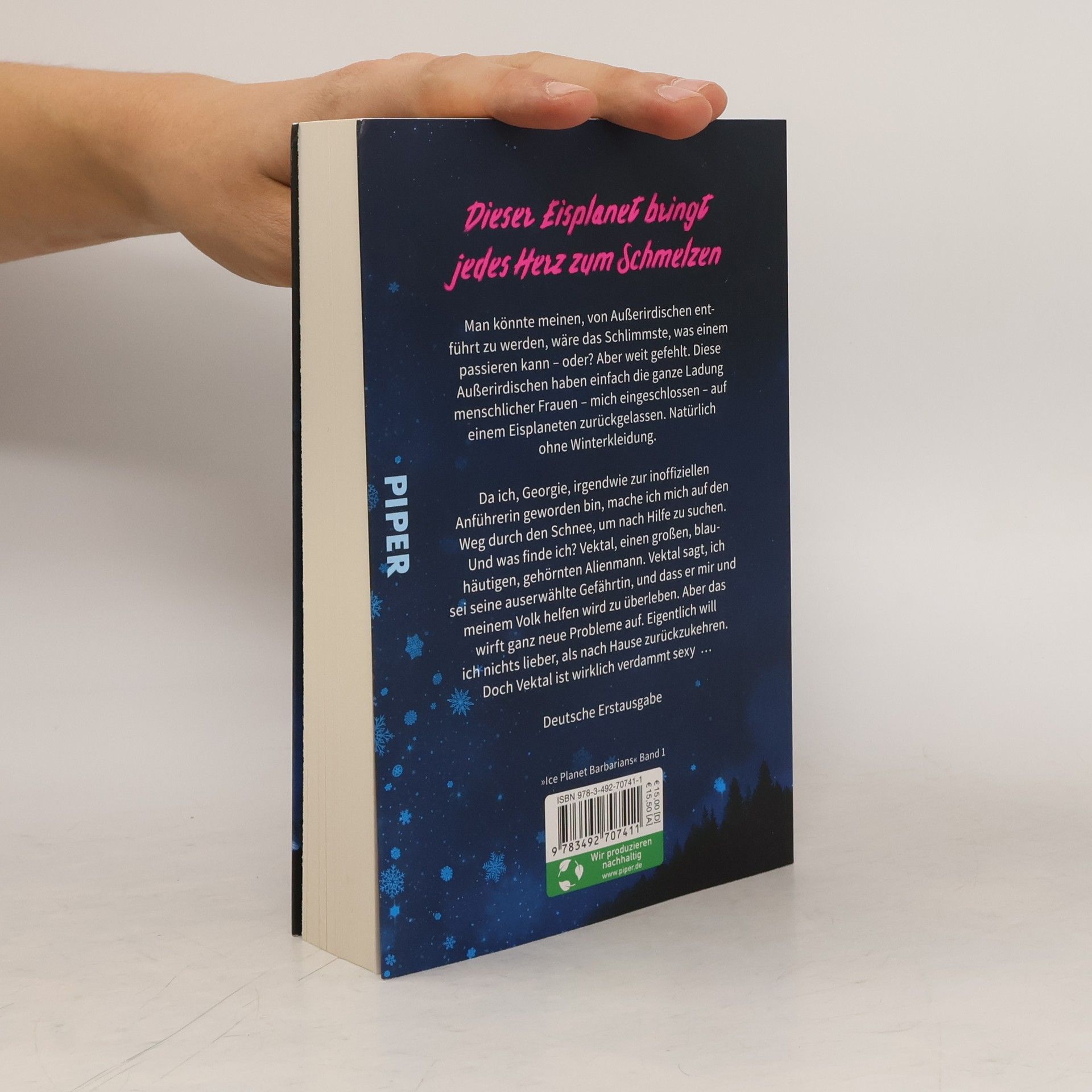 *** TikTok made me buy it – diese Spicy Romance-Reihe hat Suchtgefahr! Jetzt endlich auf Deutsch*** Dieser Eisplanet bringt jedes Herz zum Schmelzen! Georgie und einige andere Frauen wurden von Aliens entführt und sind auf einem fremden Planeten abgestürzt: einem Eisplaneten mit Schneestürmen und lebensbedrohlichen Temperaturen, auf dem es weit und breit nur Schnee und Kälte gibt. Georgie macht sich mit der einzigen wetterfesten Kleidung auf die Suche nach Hilfe, um ihre Begleiterinnen und sich zu retten. Und tatsächlich findet sie diese auch: Vektal, ein großer blauer Einheimischer, ist nicht nur äußerst hilfsbereit, sondern auch ziemlich sexy ... Dies ist der erste Band der Ice Planet Barbarians. In jedem Band dieser heißen Romance-Reihe wird die Love Story eines neuen Pärchens erzählt, das in einer unwirtlichen Welt voller Eis und Schnee zueinander findet. Weitere Bände der Reihe: Ice Planet Barbarians – Georgie und Vektal (Band 1) Ice Planet Barbarians – Liz und Raahosh (Band 2) Ice Planet Barbarians – Kira und Aehako (Band 3) Ice Planet Barbarians – Harlow und Rukh (Band 4) Ice Planet Barbarians – Tiffany und Salukh (Band 5)