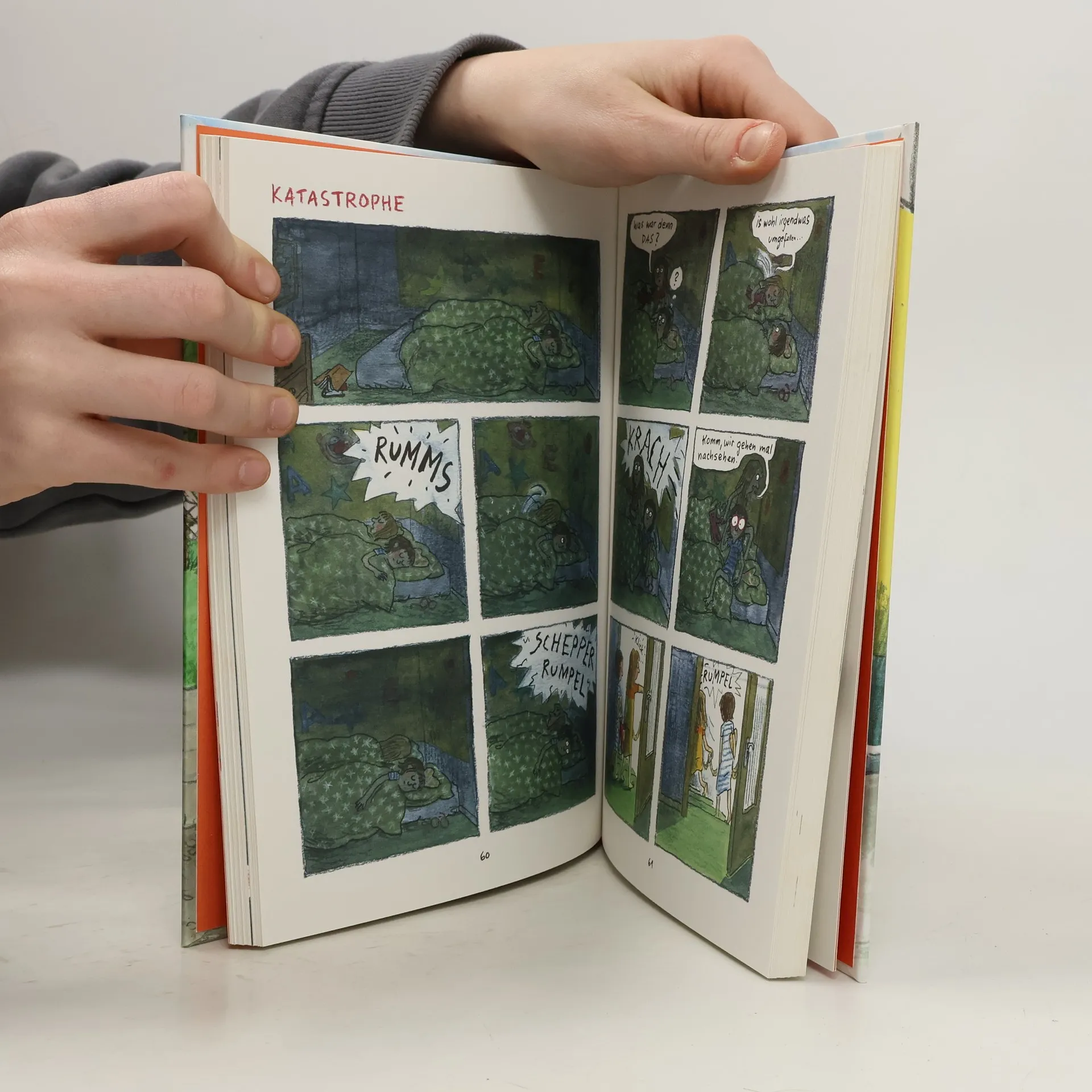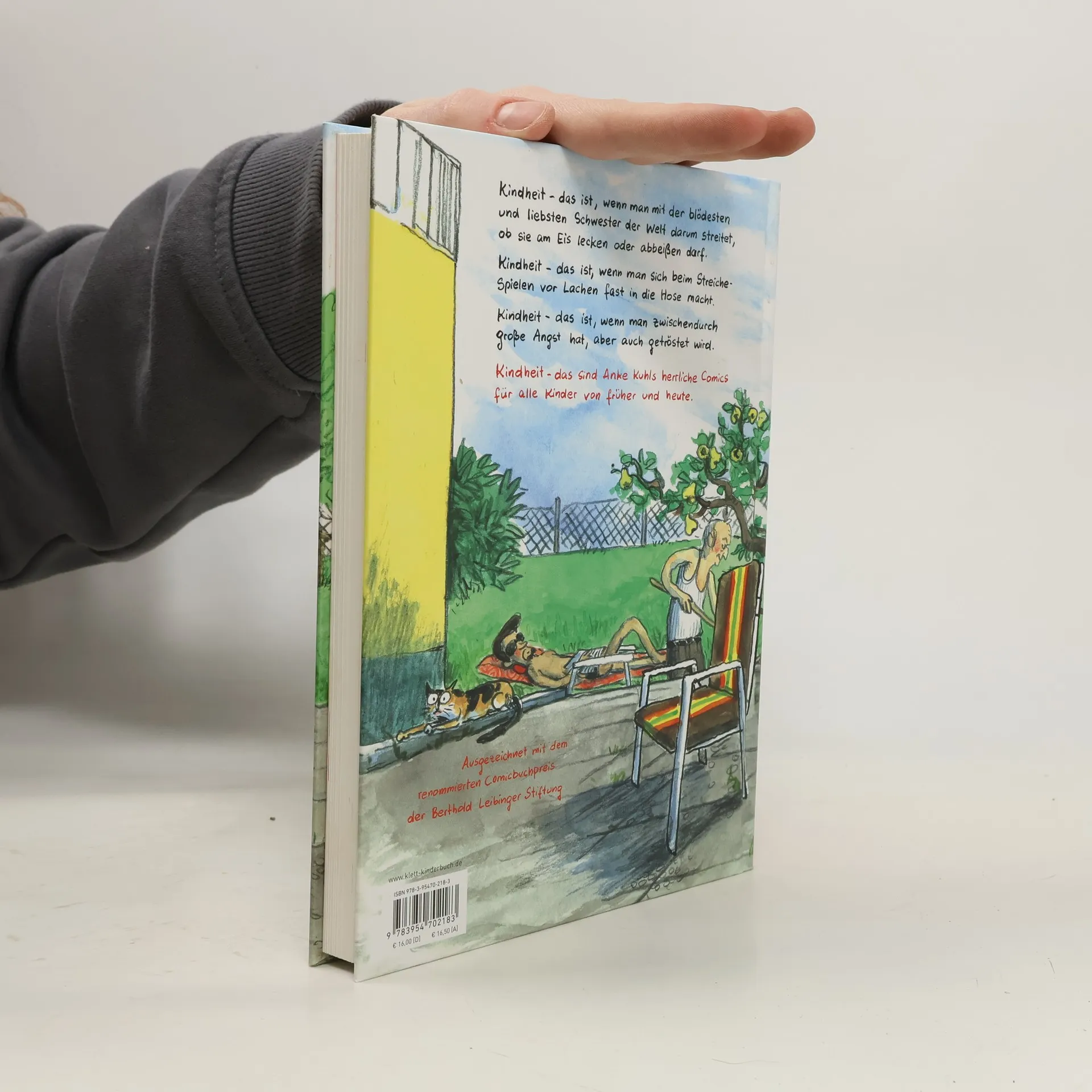 Nominiert für den Deutschen Jugendliteraturpreis 2021 in der Sparte „Kinderbuch“ Die meisten von uns kennen und lieben Anke Kuhl. Wir lieben ihren herrlich frechen, lockeren Strich, die ernsten Kulleraugen in Kindergesichtern, die nicht ständig lächeln. Wir lieben ihren Sinn für Körperlichkeit in „Klär mich auf“, ihren schwarzen Humor in „Alle Kinder“ und die tiefgründigen Mienen ihrer Tierfiguren. Jetzt erhalten wir eine Ahnung davon, wo dieser Reichtum seinen Ursprung hat. „Manno!“ erzählt in herrlichen Comic-Episoden von der Kindheit der kleinen Anke in einer hessischen Kleinstadt. Wir tauchen ein in eine Welt, in der Oma und Opa noch im selben Haus leben und in der man nachmittags auf ziemlich abseitige Ideen kommen kann. Eine Welt, die bei aller Familienintimität nicht ohne Brüche ist. Ein ungemein berührendes Buch für Kinder und Große mit einer immensen Spannbreite von quietschkomisch bis tieftraurig und ganz viel dazwischen. Preise und Auszeichnungen: Nominiert für den Deutschen Jugendliteraturpreis 2021 Comicbuchpreis 2019 der Berthold-Leibinger-Stiftung Beste 7 im März 2020 Luchs des Monats im Juni 2020 Max und Moritz-Preis 2020 (Kategorie: „Bester Comic für Kinder“) White Ravens 2020 Leselotse der Zeitschrift Buchjournal