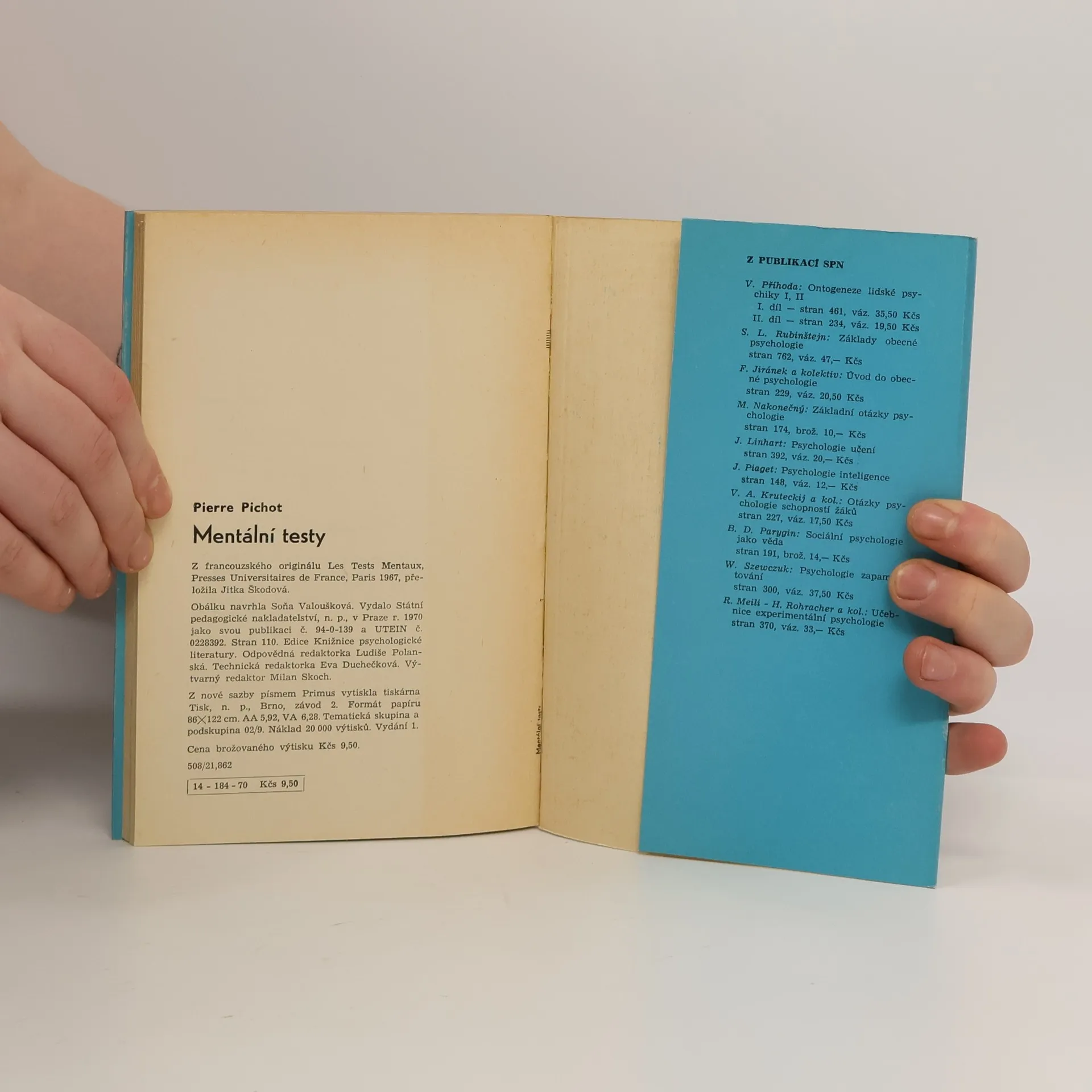Ve zhuštěném přehledu vyznačuje knížka, jejímž autorem je profesor lékařské fakulty pařížské university, hranice možností psychodiagnostiky, prováděné mentálními testy. Nejprve psychologické testy definuje, nastiňuje jejich vývoj,probírá jejich vlastnosti, klasifikaci a význam, kterýstále roste se zdokonalováním testových metod. Poté se podrobněji věnuje testům schopností, testům znalostí a testům osobnosti. Představuje solidní zdroj podstatných informací o závažné sféře soudobé psychologie.