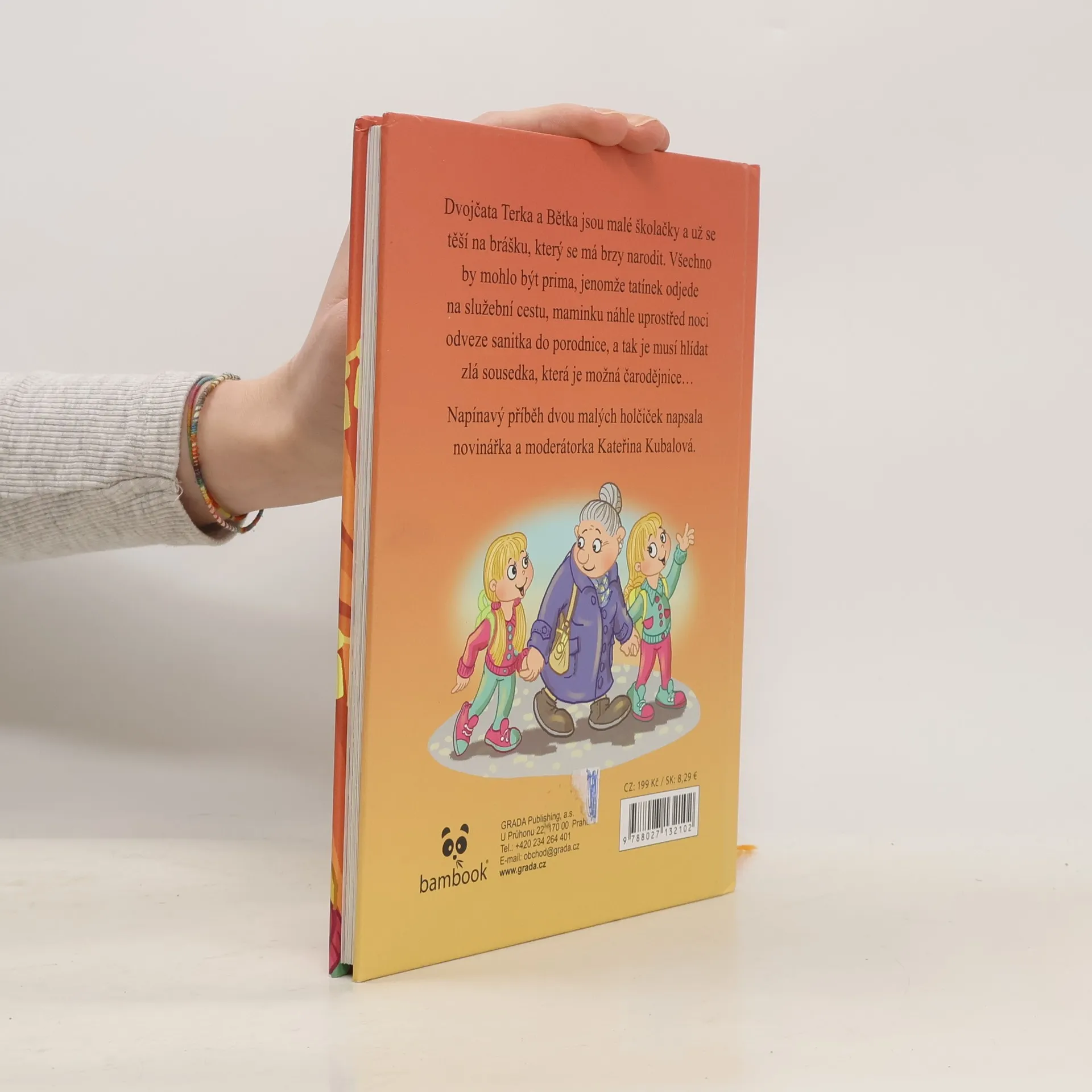 Dvojčata Terka a Bětka jsou malé školačky a už se těší na brášku, který se má brzy narodit. Všechno by mohlo být prima, jenomže tatínek odjede na služební cestu, maminku náhle uprostřed noci odveze sanitka do porodnice, a tak je musí hlídat zlá sousedka, která je možná čarodějnice… Napínavý příběh dvou malých holčiček napsala novinářka a moderátorka Kateřina Kubalová.