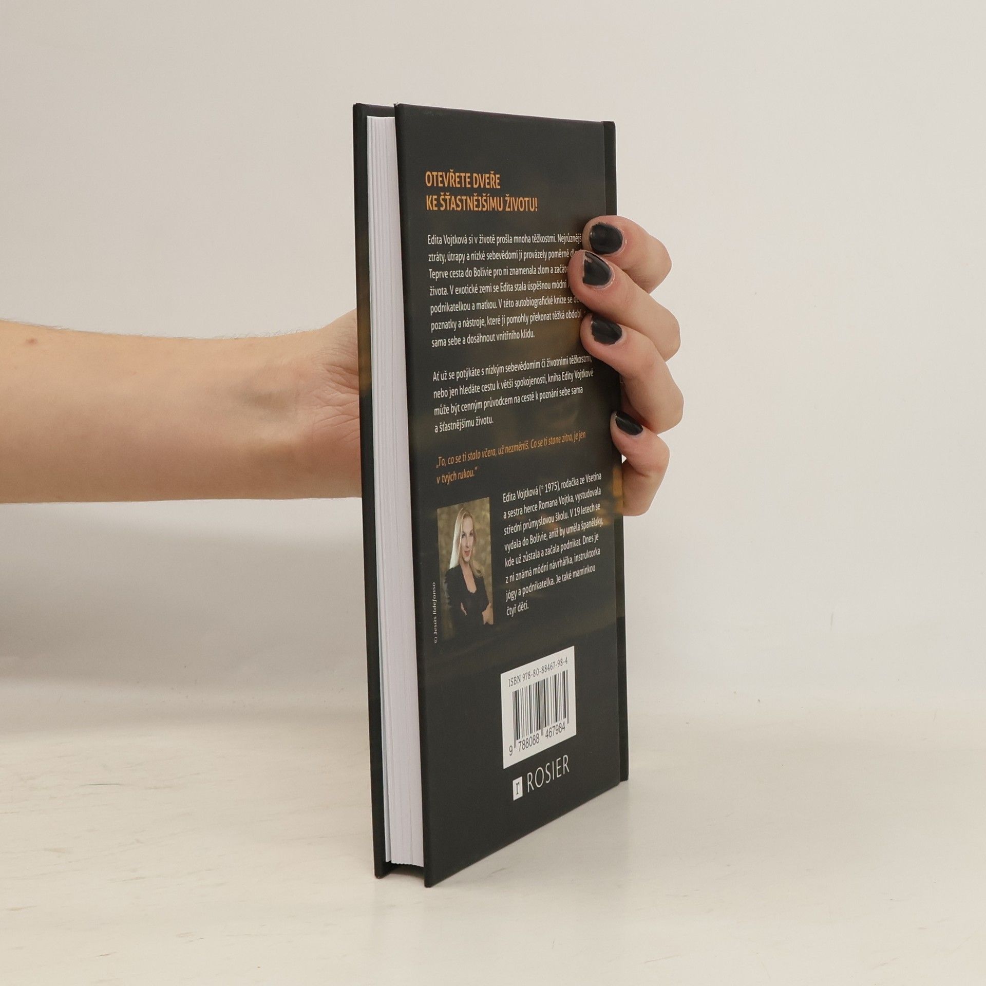 Inspirativní příběh o odvaze změnit svůj život. Edita Vojtková si v životě prošla mnoha těžkostmi. Nejrůznější ztráty, útrapy a nízké sebevědomí ji provázely poměrně dlouho. Teprve cesta do Bolívie pro ni znamenala zlom a začátek nového života. V exotické zemi se Edita stala úspěšnou módní návrhářkou, podnikatelkou a matkou. V této autobiografické knize se dělí o své poznatky a nástroje, které jí pomohly překonat těžká období, najít sama sebe a dosáhnout vnitřního klidu. Ať už se potýkáte s nízkým sebevědomím či životními těžkostmi, nebo jen hledáte cestu k větší spokojenosti, kniha Edity Vojtkové může být cenným průvodcem na cestě k poznání sebe sama a šťastnějšímu životu. „To, co se ti stalo včera, už nezměníš. Co se ti stane zítra, je jen v tvých rukou.
