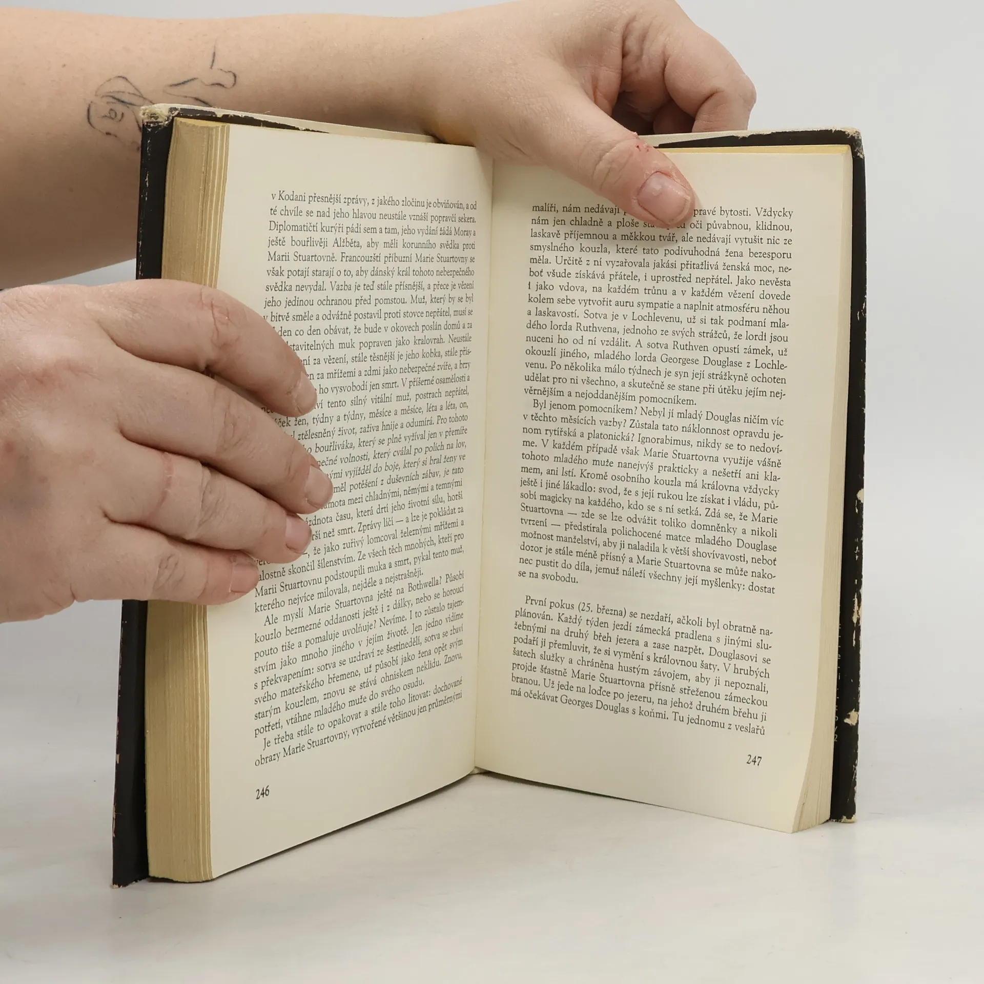 V knize je velice poutavě popsán životní příběh Marie Stuartovny (8. prosince 1542 – 8. února 1587) a dopodrobna zobrazena psychologie jejího jednání. Marie Stuartovna byla dcera skotského krále Jakuba V. z rodu Stuartů a francouzské šlechtičny Marie de Guise. Byla francouzskou (1559–1560) avládnoucí skotskou (1542–1567) královnou. Skotskou královnou se stala už jako šestidenní dítě poté, co její otec zemřel na choleru. Už v prvním roce svého života, 9. září 1543, byla korunována skotskou královnou. Jako šestileté dítě, roku 1548, byla zaslíbena jako budoucí manželka francouzskému dauphinovi Františkovi a téhož roku také do Francie dorazila. Francouzskou královnou se stala jakožto manželka krále Františka II., s nímž jakožto čtrnáctiletým uzavřela 24. dubna 1558 ve věku 15 let plánovaný sňatek. Necelé dva měsíce po tomto sňatku Král Jindřich II. tragicky zemřel a František nastoupil na trůn. V zemi však fakticky vládli strýcové Marie z rodu Guisů. V osmnácti letech ovdověla, opustila svoji milovanou Francii a vrátila se zpět do rodného Skotska. Po smrti Marie I. Tudorovny neuznala za právoplatnou anglickou královnu její nevlastní sestru Alžbětu I., svoji tetu z druhého kolena, a sama se začala titulovat také jako anglická královna, neboť byla pravnučkou krále Jindřicha VII. Tudora. O získání londýnského trůnu se však nikterak nesnažila.