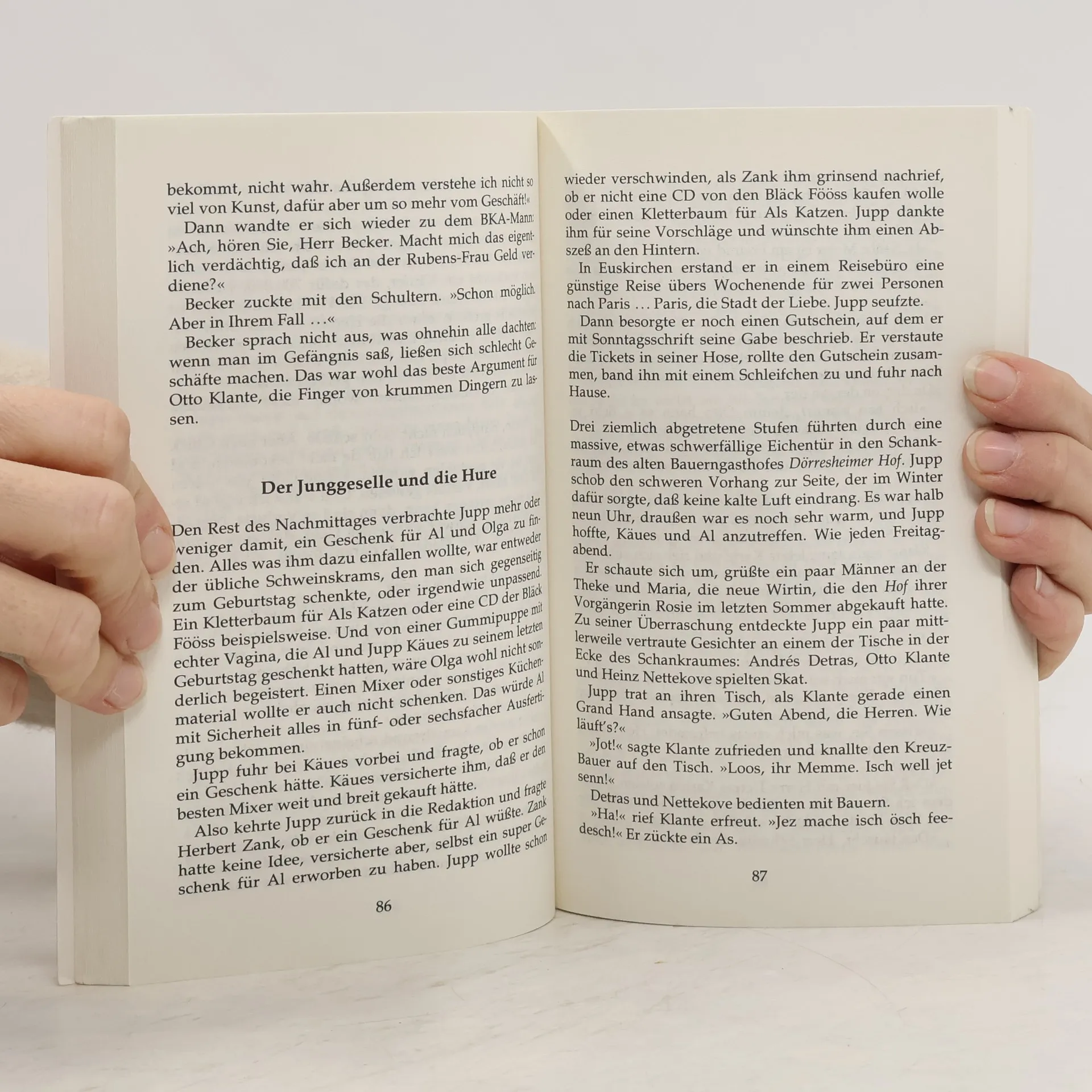 Eine wertvolle Münze aus der Antike wird gestohlen, taucht wieder auf, wird erneut gestohlen. Auch Jupp Schmitz, Redakteur des Dörresheimer Wochenblattes, macht sich auf die Suche. Derweil kämpft die „IG Glaube, Sitte, Heimat“ für die Schließung des neuen Bordells. „Izquierdo. ist mit derartigem Sprachwitz und einer feinen Beobachtungsgabe für die Idiotien des Alltags gesegnet, daß man aus dem Lesen und Lachen nicht herauskommt. Eine Art kölscher Gerhard Polt führt uns den Provinzmief vor der eigenen Haustür vor: ob Fußball, Sex oder Verbrechen, kichernd folgen wir Jupp in die Abgründe dieses Sumpfes aus Kleinbürgerlichkeit und Kriminalität.“ (Kölner Illustrierte)