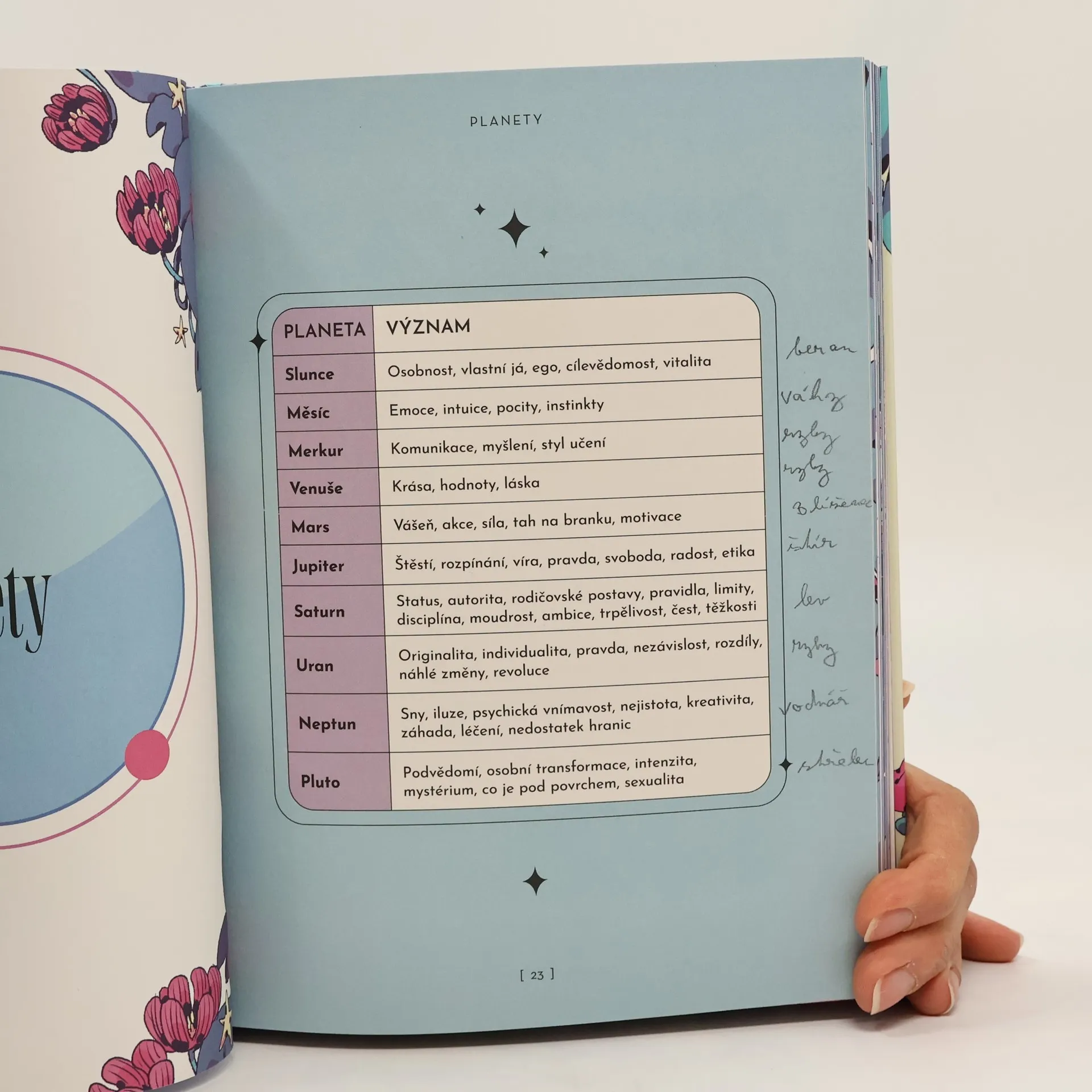 „Každé znamení zvěrokruhu řídí jedna nebo více planet; jejich vliv určuje vlastnosti, díky nimž jsme jedineční a neopakovatelní. Tato kniha nás vezme na cestu, při které objevíme základní principy astrologie založené na dvanácti znameních.“ Nezávislá čarodějka a zakladatelka časopisu Witchology Ambrosia Hawthorn vám ve své knize Magie zvěrokruhu představuje charakteristiky jednotlivých znamení v jejich souvislostech s mnoha aspekty života, např. ve společenském a rodinném životě, v práci a kariéře, v rámci pocitů a emoční inteligence nebo v lásce. Podrobně se zabývá vzájemnou interakcí s dalšími znameními v rámci zaměstnání, milostného života a rodičovských či sourozeneckých vztahů, ale také magickými aktivitami, které s daným znamením souvisí, výklady Velké arkány tarotu, výrobou amuletů nebo spojitosti s drahokamy. Dozvíte se také principy tvorby a výkladu horoskopu a význam a charakteristiky různých dómů a planet. Vše doprovázejí hravé ilustrace italské ilustrátorky Silvie Vanni, díky nimž knihu přečtete jedním dechem, ale stejně tak se k ní budete rádi vracet.