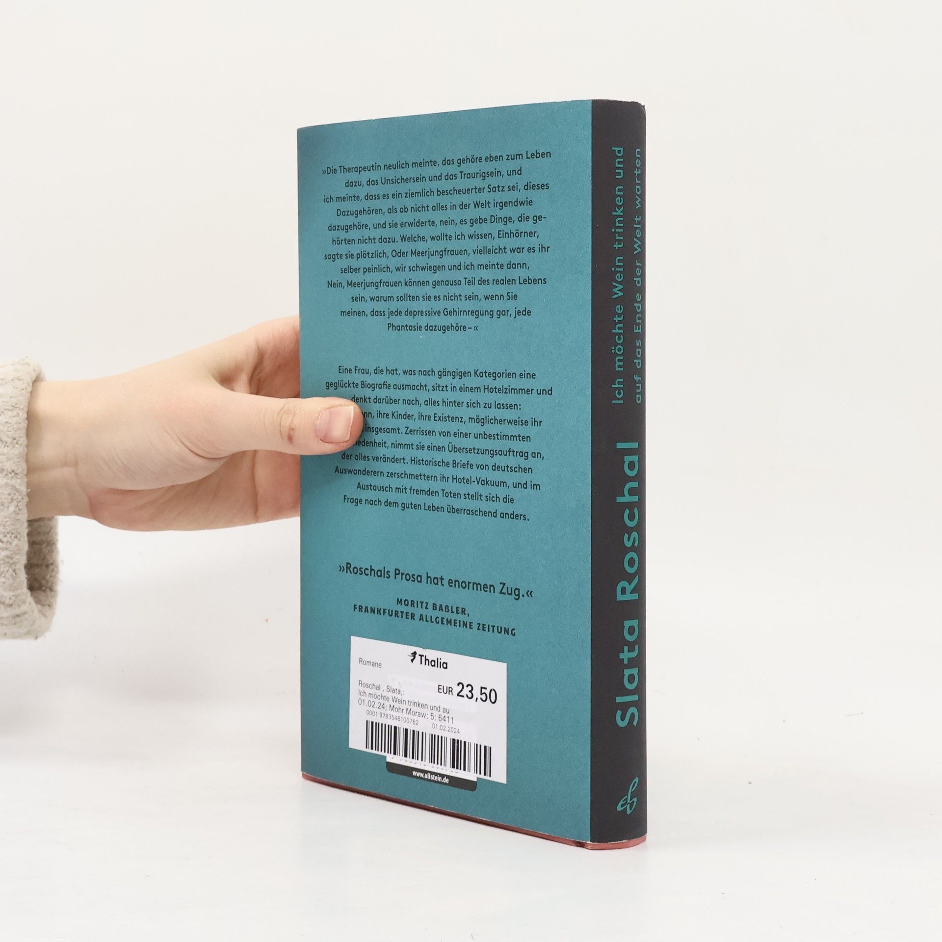 Ein kleines Hotelzimmer, das ein Fenster zur Welt wird Eine Frau, die hat, was nach gängigen Kategorien eine geglückte Biographie ausmacht, sitzt in einem Hotelzimmer und denkt darüber nach, alles hinter sich zu lassen: ihren Mann, ihre Kinder, ihre Existenz, möglicherweise ihr Leben insgesamt. Zerrissen von einer unbestimmten Unzufriedenheit, getrieben von Überforderung nimmt sie einen Übersetzungsauftrag an, der alles verändert. Historische Briefe von deutschen Auswanderern zerschmettern ihr Hotel-Vakuum und im Austausch mit fremden Toten, mit unerwarteten Wegen stellt sich die Frage nach dem guten Leben überraschend anders. Bereits Slata Roschals Debüt war 2022 für den Deutschen Buchpreis nominiert. Mit »Ich möchte Wein trinken und auf das Ende der Welt warten« beweist sie sich als eine der interessantesten jungen Stimmen in der deutschsprachigen Literatur.