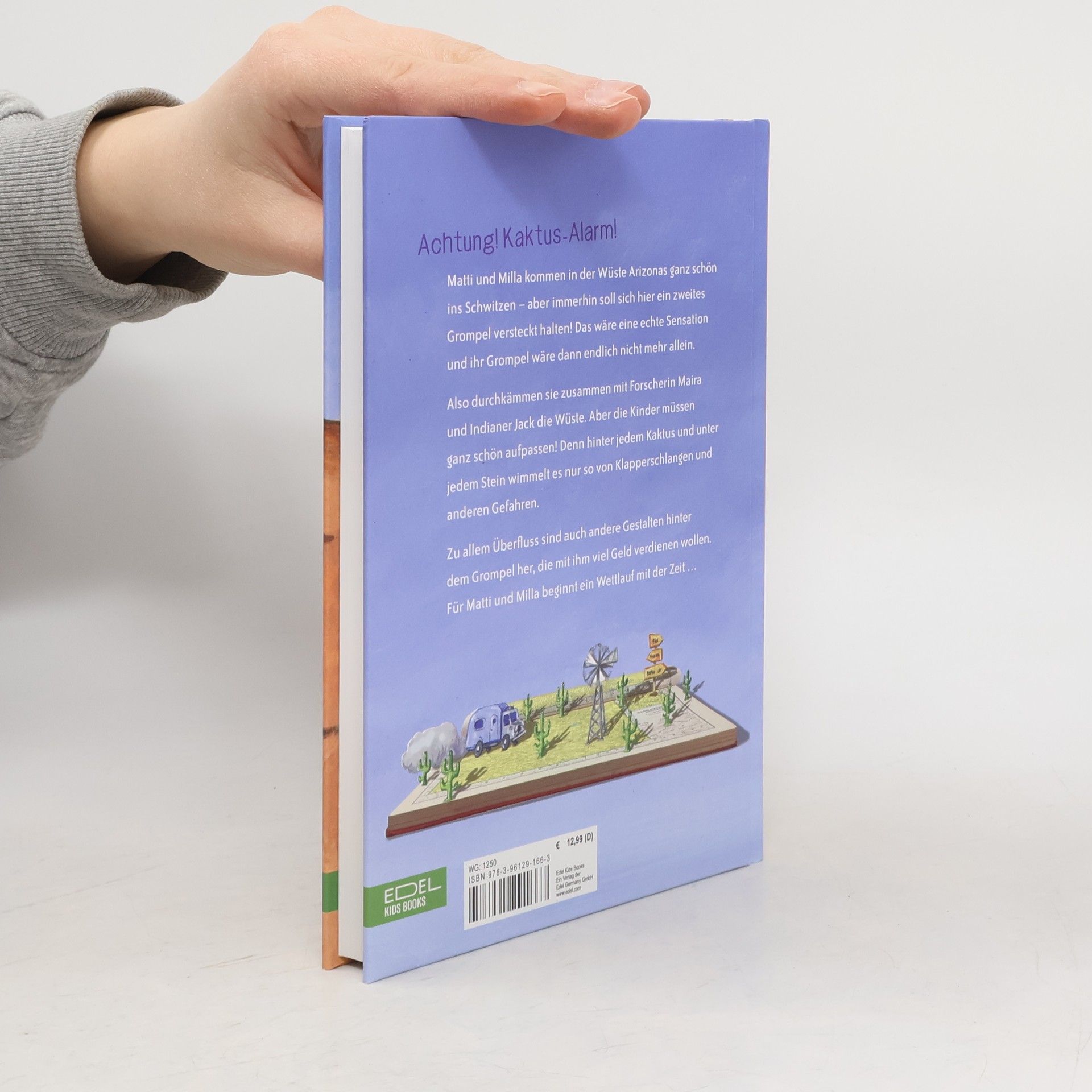 Matti und Milla kommen in der Wüste Arizonas ganz schön ins Schwitzen – denn hier soll sich doch tatsächlich ein zweites Grompel versteckt halten! Das wäre eine Sensation und ihr Grompel wäre dann endlich nicht mehr allein. Also machen sich die Kinder zusammen mit Forscherin Maira, Indianer Jack und ihrem Vater auf die Suche. Die Kinder müssen ganz schön aufpassen! Hinter jedem Kaktus und unter jedem Stein wimmelt es nur so von Klapperschlangen, Skorpionen und anderen Tieren. Und zu allem Überfluss sind auch noch einige andere Gestalten hinter Grompel her, die mit ihm viel Geld verdienen wollen. Für Matti und Milla beginnt ein Wettlauf mit der Zeit …