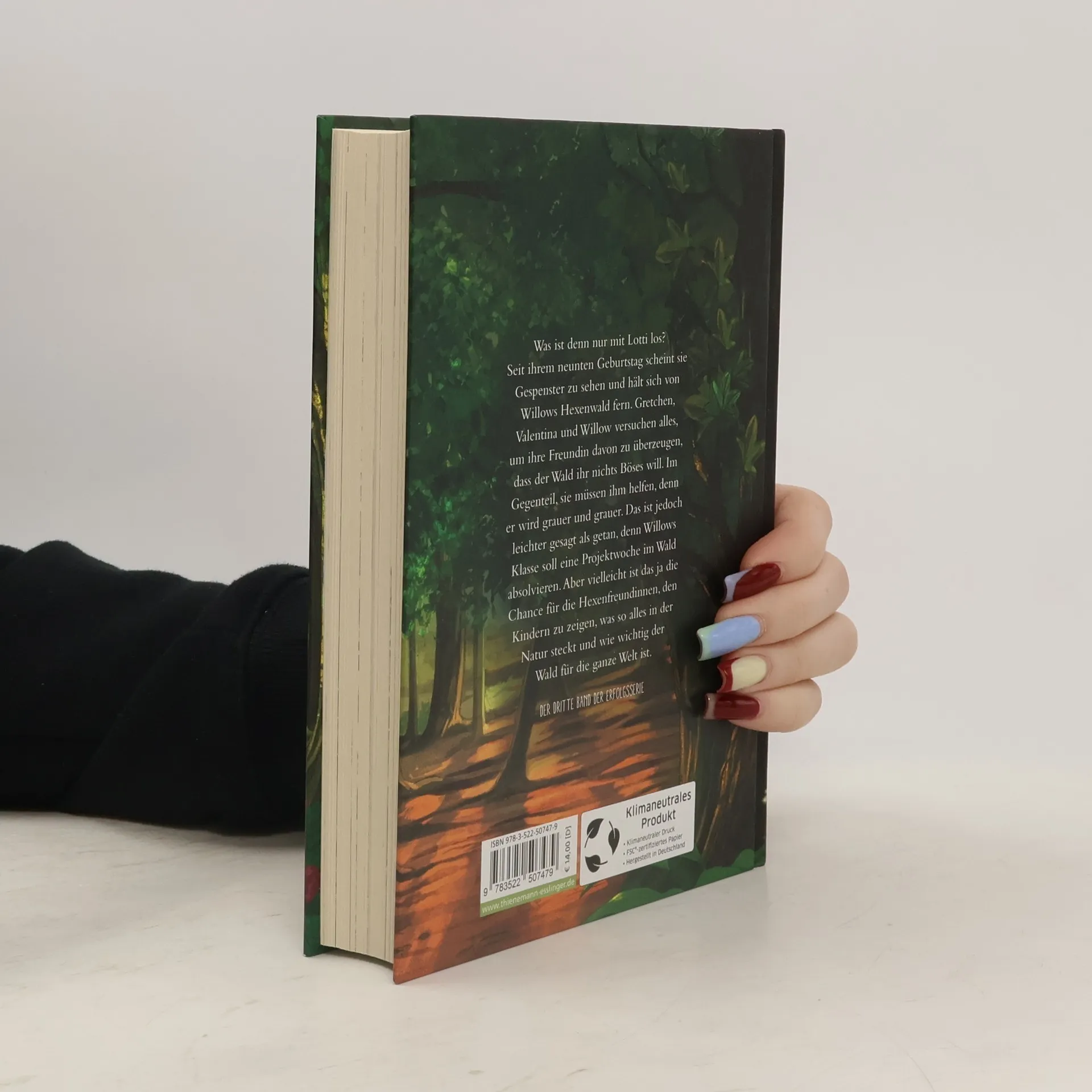 Entdecke die Kraft der Natur Was ist denn nur mit Lotti los? Seit ihrem 9. Geburtstag scheint sie Gespenster zu sehen und hält sich von Willows Hexenwald fern. Gretchen, Valentina und Willow versuchen alles, um ihre Freundin davon zu überzeugen, dass der Wald ihr nichts Böses will. Im Gegenteil, sie müssen ihm helfen, denn er wird grauer und grauer. Das ist jedoch leichter gesagt als getan, denn Willows Klasse soll eine Projektwoche im Wald absolvieren. Aber vielleicht ist das ja die Chance für die Hexenfreundinnen, den Kindern zu zeigen, was so alles in der Natur steckt und wie wichtig der Wald für die ganze Welt ist. In dieser Serie bereits erschienen: Ein Mädchen namens Willow (1) Ein Mädchen namens Willow – Waldgeflüster (2) „Ein Mädchen namens Willow“-Stoffbeutel „Ein Mädchen namens Willow“-Waldtagebuch Begeisterte Leserstimmen: „Meine 9-jährige Tochter war von der Geschichte gefesselt und konnte das Buch nicht mehr weglegen.“ „Ein wirklich schönes Buch mit schönen Gedichten und schönen Illustration. Kam als Geschenk für einen 10-Jährigen sehr gut an.“ „Wir haben alle Willow-Bücher gelesen und es ist ein sehr positives, nettes und 'angstfreies' Buch. Die Geschichte ist nicht aggressiv und zeigt die Wichtigkeit der Natur auf, wie auch die 'richtigen' Freunde zu treffen und gemeinsam Probleme zu lösen. Sehr empfehlenswert.“