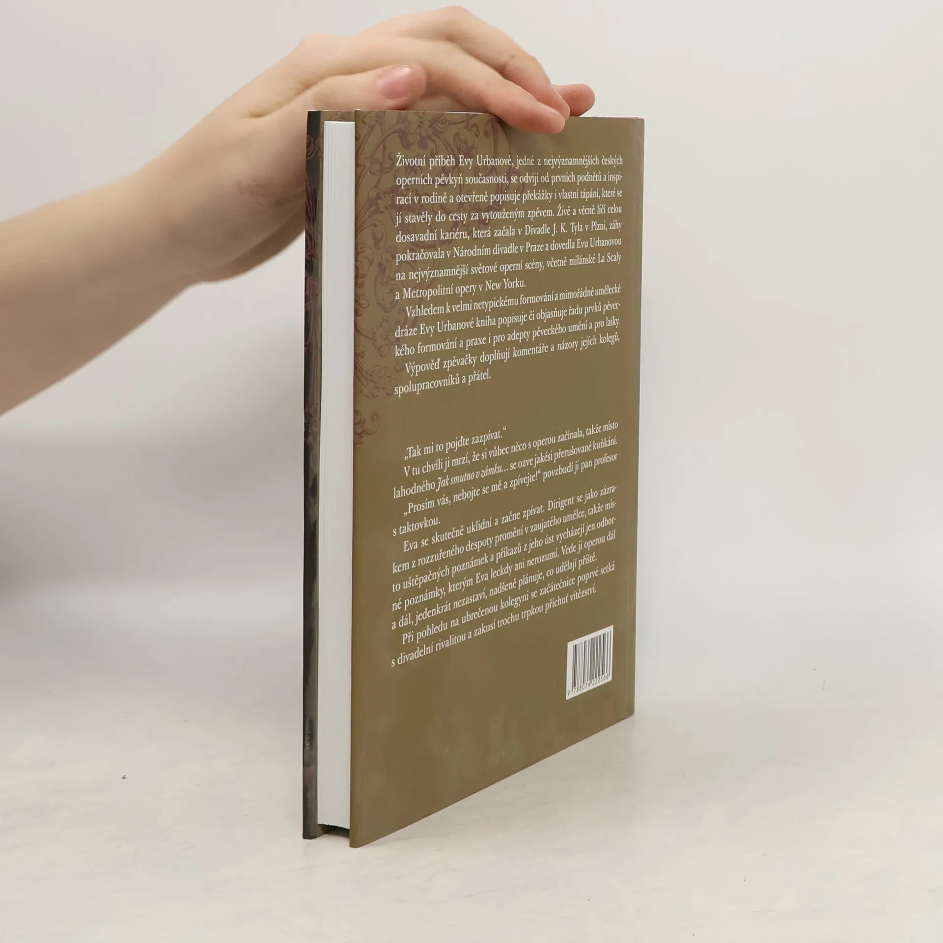 Životní příběh Evy Urbanové, jedné z nejvýznamnějších českých operních pěvkyň současnosti, se odvíjí od prvních podnětů a inspiraci v rodině a otevřeně popisuje překážky i vlastní tápání, které se jí stavělo do cesty za vytouženým zpěvem. Živě a věcně líčí celou dosavadní kariéru, která začala v Divadle J.K. Tyla v Plzni, záhy pokračovala v Národním divadle v Praze a dovedla Evu Urbanovou na nejvýznamnější světové operní scény, včetně milánské La Scaly a Metropolitní opery v New Yorku. Vzhledem k velmi netypickému formování a mimořádné umělecké dráze Evy Urbanové kniha popisuje či objasňuje řadu prvků pěveckého umění a pro laiky. Výpověď zpěvačky doplňují komentáře a názory jejich kolegů, spolupracovníků a přátel.