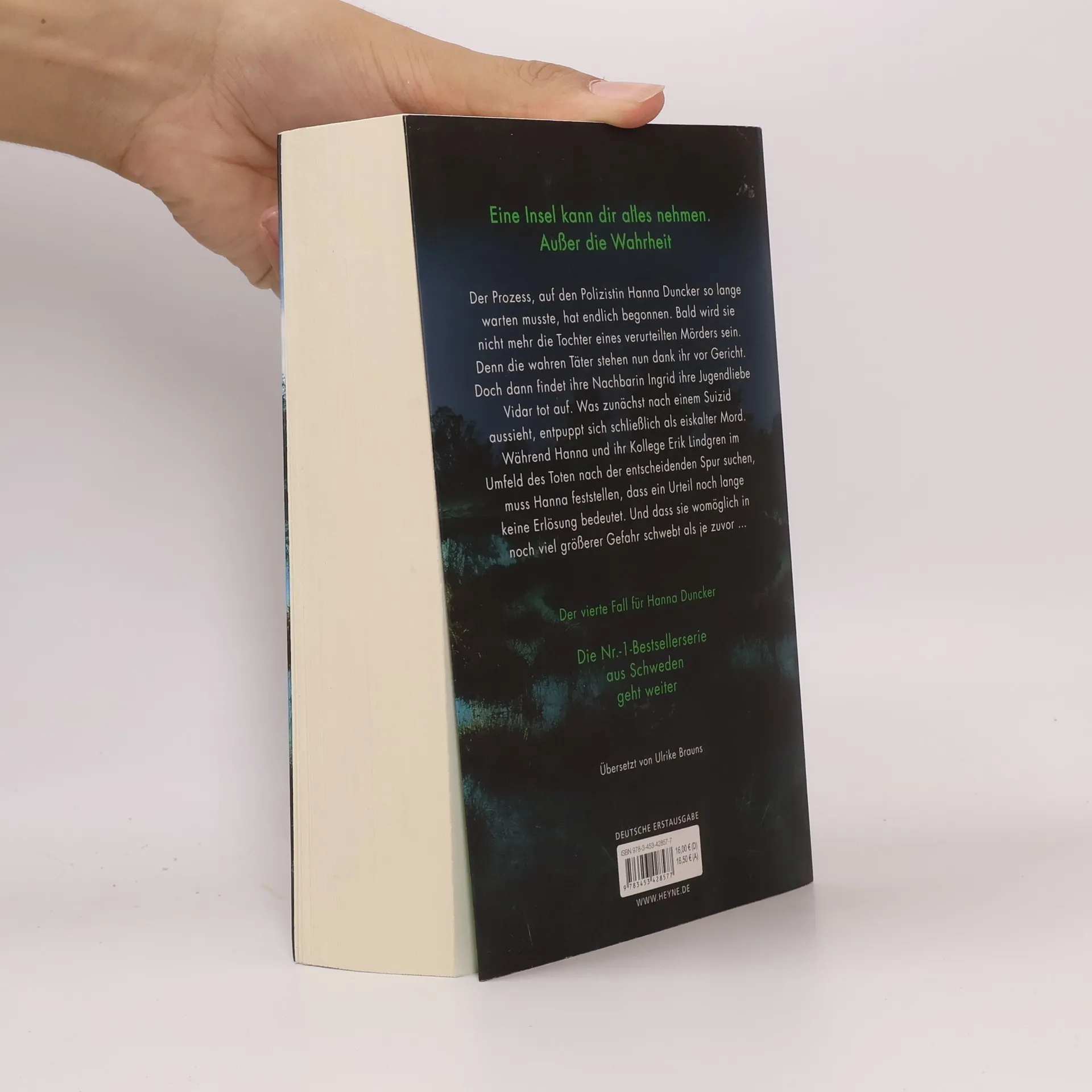Eine Insel kann dir alles nehmen. Außer die Wahrheit Der Prozess, auf den Hanna so lange warten musste, hat endlich begonnen. Bald wird sie nicht mehr die Tochter eines verurteilten Mörders sein. Denn die wahren Täter stehen nun dank ihr vor Gericht. Doch dann findet ihre Nachbarin Ingrid ihre Jugendliebe Vidar tot auf. Was zunächst nach einem Suizid aussieht, entpuppt sich schließlich als eiskalter Mord. Während Hanna und ihr Kollege Erik im Umfeld des Toten nach der entscheidenden Spur suchen, muss Hanna feststellen, dass ein Urteil noch lange keine Erlösung bedeutet. Und dass sie womöglich in noch viel größerer Gefahr schwebt als je zuvor … Die »Hanna Duncker«-Reihe: Band 1: Nachttod Band 2: Finsterhaus Band 3: Dunkelwald Band 4: Nebelstunde Band 5: Dämmersee Alle Bände können auch unabhängig voneinander gelesen werden
