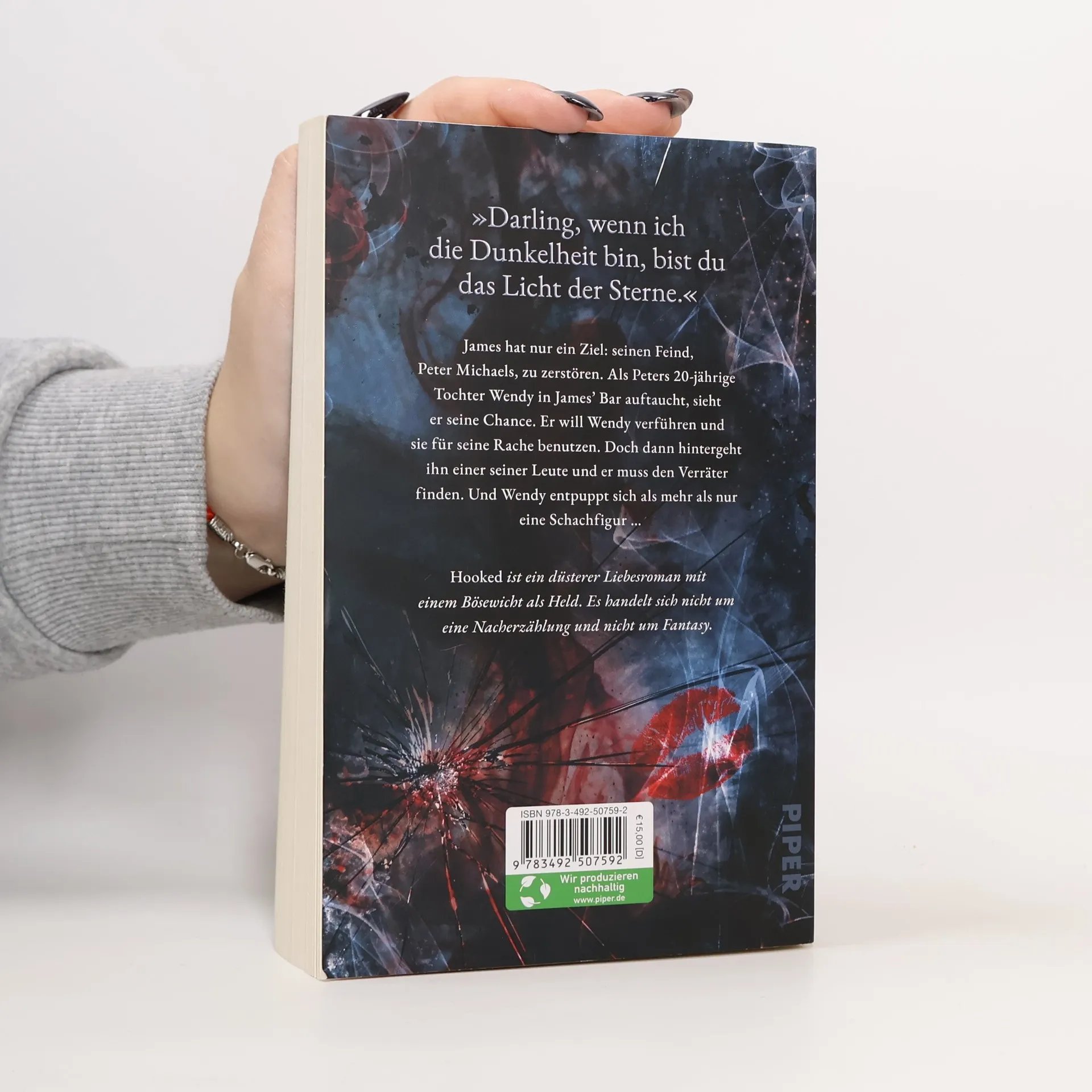 Dark Romance meets Retelling: Er will Rache, aber er will sie mehr ... James hatte immer nur ein Ziel: seinen Feind, Peter Michaels, zu vernichten. Als Peters zwanzigjährige Tochter Wendy in James' Bar auftaucht, sieht er seine Chance gekommen. Er will Wendy verführen und für seine Rache benutzen. Es ist der perfekte Plan, bis die Dinge in James' Organisation zu bröckeln beginnen. Plötzlich muss er den Verräter in ihrer Mitte finden. Und er beginnt, in Wendy mehr als nur eine Schachfigur in seinem Spiel zu sehen. Wendy wurde die meiste Zeit ihres Lebens von ihrem reichen, kalten Vater abgeschirmt. Als sie sich eines abends mit Freunden wegstiehlt, um in einem Club zu feiern, lernt sie den dunklen und geheimnisvollen James kennen. Wendy weiß, dass James gefährlich ist, fühlt sich aber trotzdem zu ihm hingezogen. Während ihre Beziehung immer inniger wird und sie mehr über die Welt erfährt, in der er sich bewegt, kann sie nicht mehr sagen, ob sie sich in den Mann namens James oder das Monster namens Hook verliebt hat. Hooked ist ein düsterer Liebesroman und der erste, unabhängig lesbare, Teil der Never-After-Serie: einer Sammlung von gebrochenen Märchen, in denen die Bösewichte die Helden sind. Es handelt sich nicht um eine Nacherzählung und nicht um Fantasy. Hooked enthält Themen und Inhalte, die möglicherweise nicht für alle Leser: innen geeignet sind. Alle Warnhinweise zum Inhalt findet ihr auf der Webseite der Autorin.