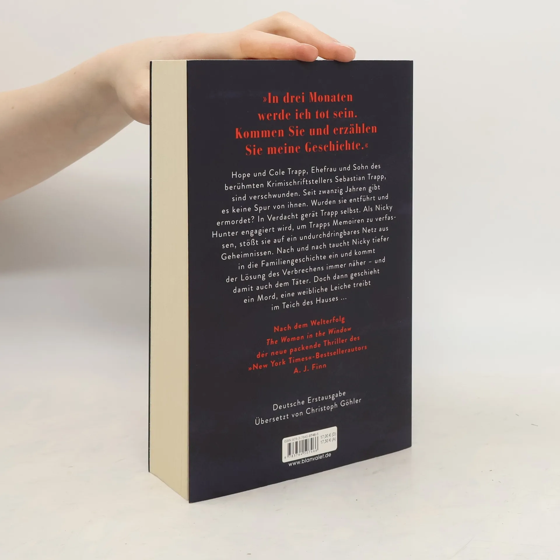 Zwei verschwundene Personen, eine Leiche, ein sagenumwobener Schriftsteller und eine junge Autorin, die tief in das undurchdringbare Netz aus Familiengeheimnissen hineingezogen wird … Hope und Cole Trapp, Ehefrau und Sohn des berühmten Krimischriftstellers Sebastian Trapp, sind verschwunden. Seit 20 Jahren gibt es keine Spur von ihnen. Wurden sie entführt und ermordet? In Verdacht gerät Trapp. Als Nicky Hunter engagiert wird, um Trapps Memoiren zu verfassen, stößt sie auf ein undurchdringbares Netz aus Geheimnissen. Nach und nach taucht Nicky tiefer in die Familiengeschichte ein und kommt der Lösung des Verbrechens immer näher – und damit auch dem Täter. Doch dann geschieht ein Mord, eine weibliche Leiche treibt im Teich des Hauses ... Lesen Sie auch den internationalen Bestseller »The Woman in the Window – Was hat sie wirklich gesehen?«