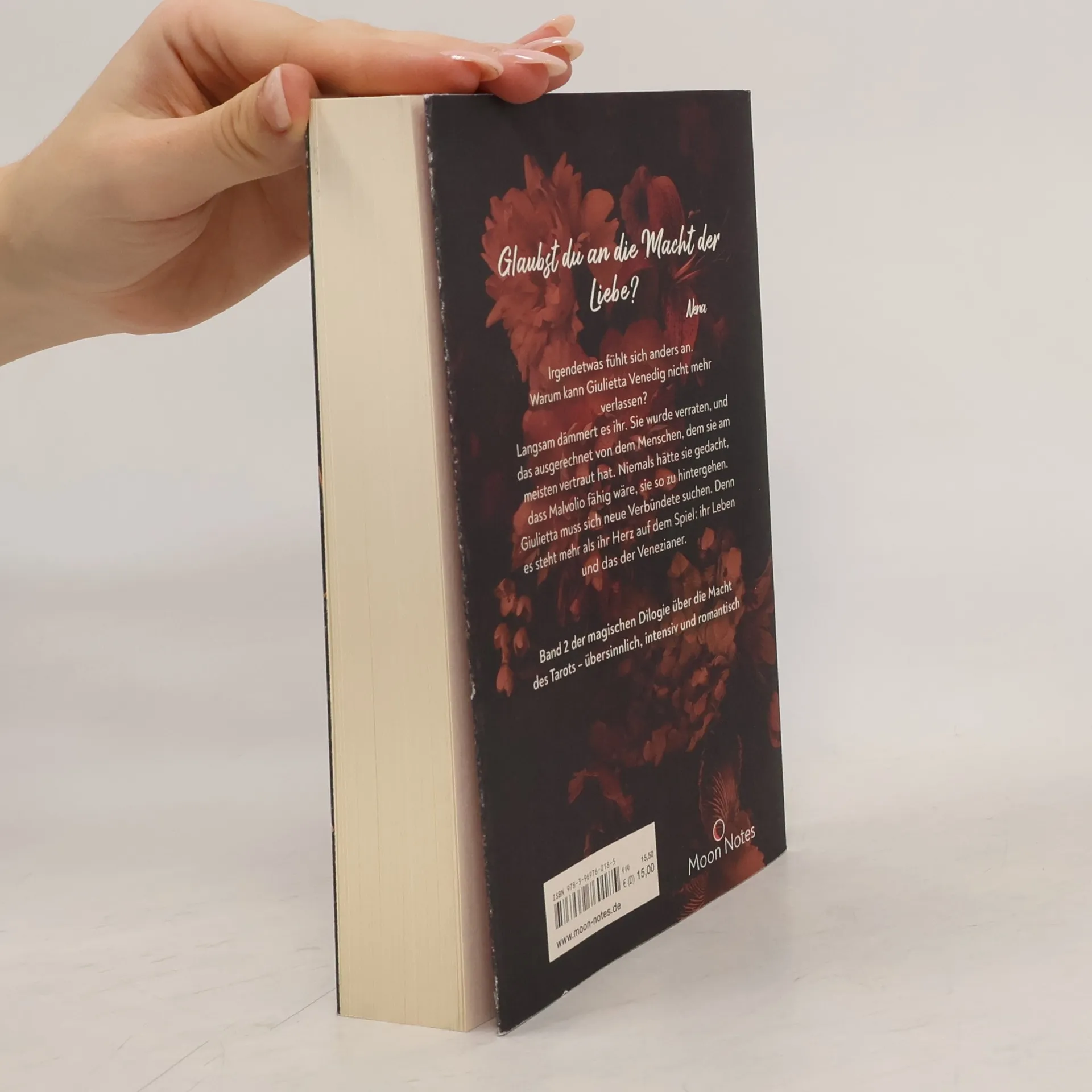 Giulietta erwacht in einem mysteriösen Zimmer im Grand Hotel in Venedig, ohne zu wissen, was mit ihr geschehen ist. Nach und nach kommt sie zu der erschreckenden Erkenntnis, dass sie in eine Tarotfigur verwandelt wurde und nun über besondere Fähigkeiten verfügt. Diese Gabe bringt jedoch nicht nur Vorteile mit sich, denn ihr rachsüchtiger Onkel macht ihr das Leben schwer, indem er andere Kartenfiguren gegen sie aufbringt. Er verbreitet die Lüge, dass Giulietta die Macht besitzt, sie alle für immer in die Karten zu verbannen, was dazu führt, dass sich Giulietta in einer Welt voller Misstrauen und Verrat wiederfindet. Ihre verzweifelte Suche nach Verbündeten und die Frage, wem sie noch trauen kann, prägen ihr Schicksal in dieser magischen Welt. Die Geschichte entfaltet sich in einer Atmosphäre voller Magie und Geheimnisse, in der die Grenzen zwischen Realität und Tarot verschwimmen. Giulietta muss lernen, mit ihrer neuen Identität und den damit verbundenen Kräften umzugehen, während sie gleichzeitig versucht, die Intrigen ihres Onkels zu durchschauen und sich gegen die Angriffe der anderen Kartenfiguren zur Wehr zu setzen. Ihre Reise ist geprägt von Selbstfindung, Mut und der Entdeckung tieferer Wahrheiten über ihre Familie und die Welt der Tarotkarten. Während sie versucht, ihre Gegner auszumanövrieren und ihre eigene Freiheit zu sichern, steht Giulietta vor der alles entscheidenden Frage: Kann sie in einer Welt voller Magie und Verrat wahre Verbündete finden und ihr Schicksal zum Guten wenden? Fesselnde Fantasy-Geschichte , die in der magischen Kulisse Venedigs spielt und die geheimnisvolle Welt der Tarotkarten zum Leben erweckt. Spannende Handlung mit einer starken weiblichen Hauptfigur , Giulietta, die entdeckt, dass sie in eine Tarotfigur verwandelt wurde und nun außergewöhnliche Kräfte besitzt. Einzigartiger Plot , der Elemente der Selbstfindung, Magie und Intrigen meisterhaft miteinander verwebt, während Giulietta lernt, ihre neuen Fähigkeiten zu beherrschen und sich gegen ihre Feinde zur Wehr setzt. Tiefe Charakterentwicklung, die Leserinnen und Leser auf eine emotionale Reise mitnimmt, auf der Vertrauen, Verrat und die Suche nach Verbündeten in einer Welt voller Geheimnisse zentrale Themen sind. Der finale Band der „Cards of Love“-Dilogie , der eine starke Liebesgeschichte mit spannenden Wendungen und überraschenden Enthüllungen bietet. Perfekt für Fans von Fantasy-Romanen , die sich nach einer innovativen Geschichte sehnen, in der Tarot und Spiritualität eine wichtige Rolle spielen. Begeisterte Leserrezensionen heben hervor, dass der zweite Band sogar noch packender und fesselnder als der erste ist, mit unerwarteten Entwicklungen, die die Leser bis zur letzten Seite in Atem halten. Wunderschön gestaltetes Buch , das nicht nur durch seinen Inhalt, sondern auch durch seine äußere Aufmachung besticht – ein echter Hingucker im Bücherregal. Empfohlen für Leserinnen und Leser, die sich für Tarot, mystische Geschichten und starke, charaktergetriebene Handlungen begeistern. Ein Muss für alle, die eine gelungene Mischung aus Magie, Liebe und Abenteuer suchen und dabei tief in die faszinierende Welt der Tarotkarten eintauchen möchten.