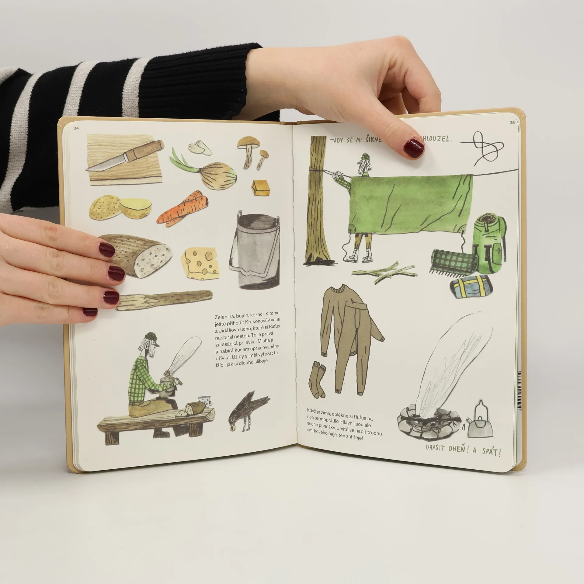 Vyrazit na víkend nebo na pár dnů do lesa, spát pod širákem, vařit si čaj ze smrkového chvojí, sbírat houby, zírat do ohně… kdo z nás to nemá rád? Les, a příroda vůbec, jsou nejlepší učitelé, jak ví každý zálesák, skaut, tramp i snílek. Rufus bydlí ve městě, ale jeho kostkovaná košile voní jehličím, kouřem táboráků a ostružinovým čajem. I když je to moderní zálesák, dává přednost křesadlu před zapalovačem a jeho vousatou bradu často zdobí zahnutá fajfka. Je to skvělý průvodce, který ví, kde hledat nejčistší studánku, k čemu se hodí březová kůra a také z kterého lišejníku se dělá nejlepší zálesácká polévka. Obrazová kniha pro začínající táborníky a milovníky přírody vůbec je autorským dílem výtvarníka Davida Dolenského.