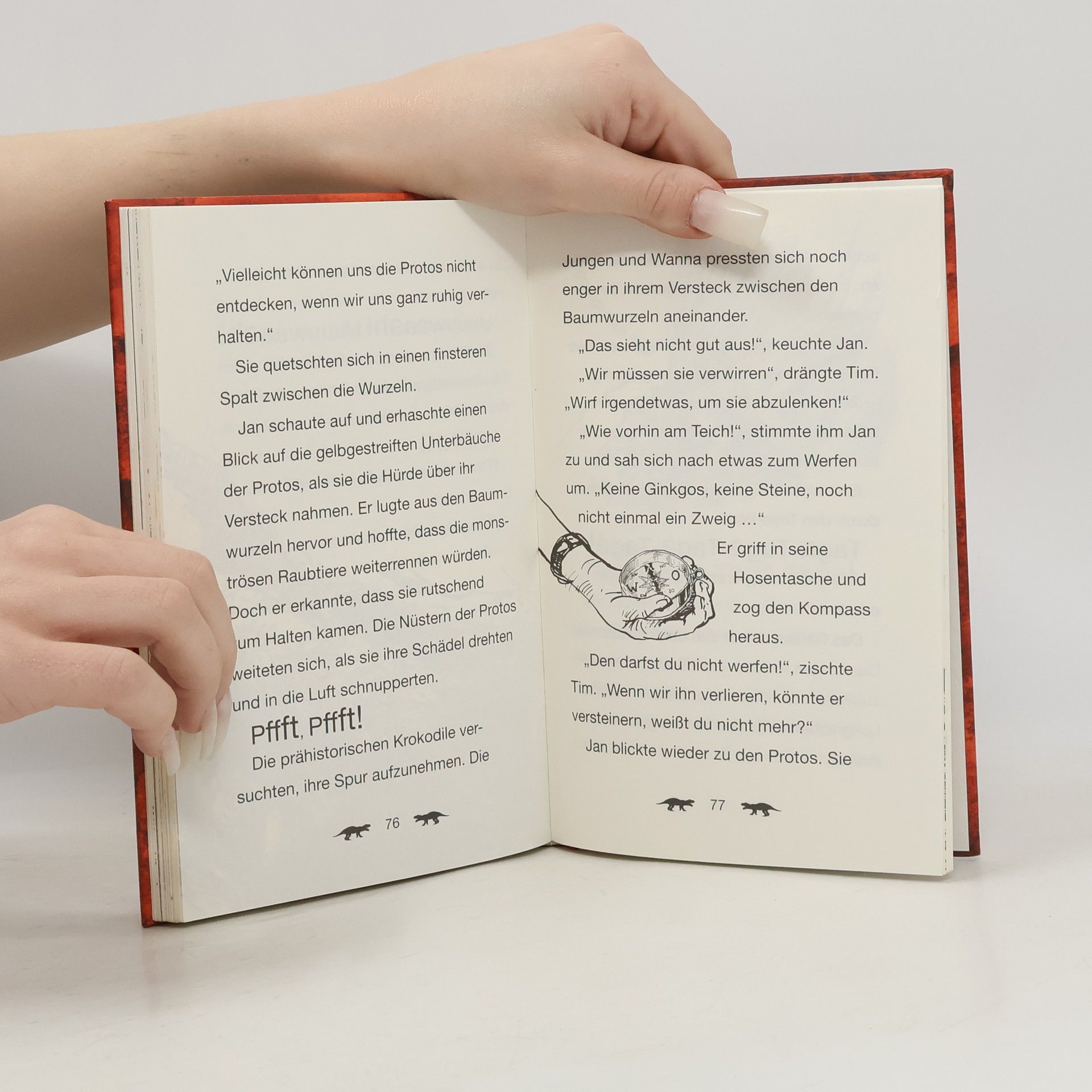 Die Freunde treffen auf gefährliche Protosuchus-Saurier – prähistorische Krokodile! Von einer Baumkrone aus beobachten Jan, Tim und Wanna die Saurier, doch plötzlich fällt Wanna ins Wasser! Gelingt es den Jungs, die Raubechsen abzulenken und Wanna zu retten ?