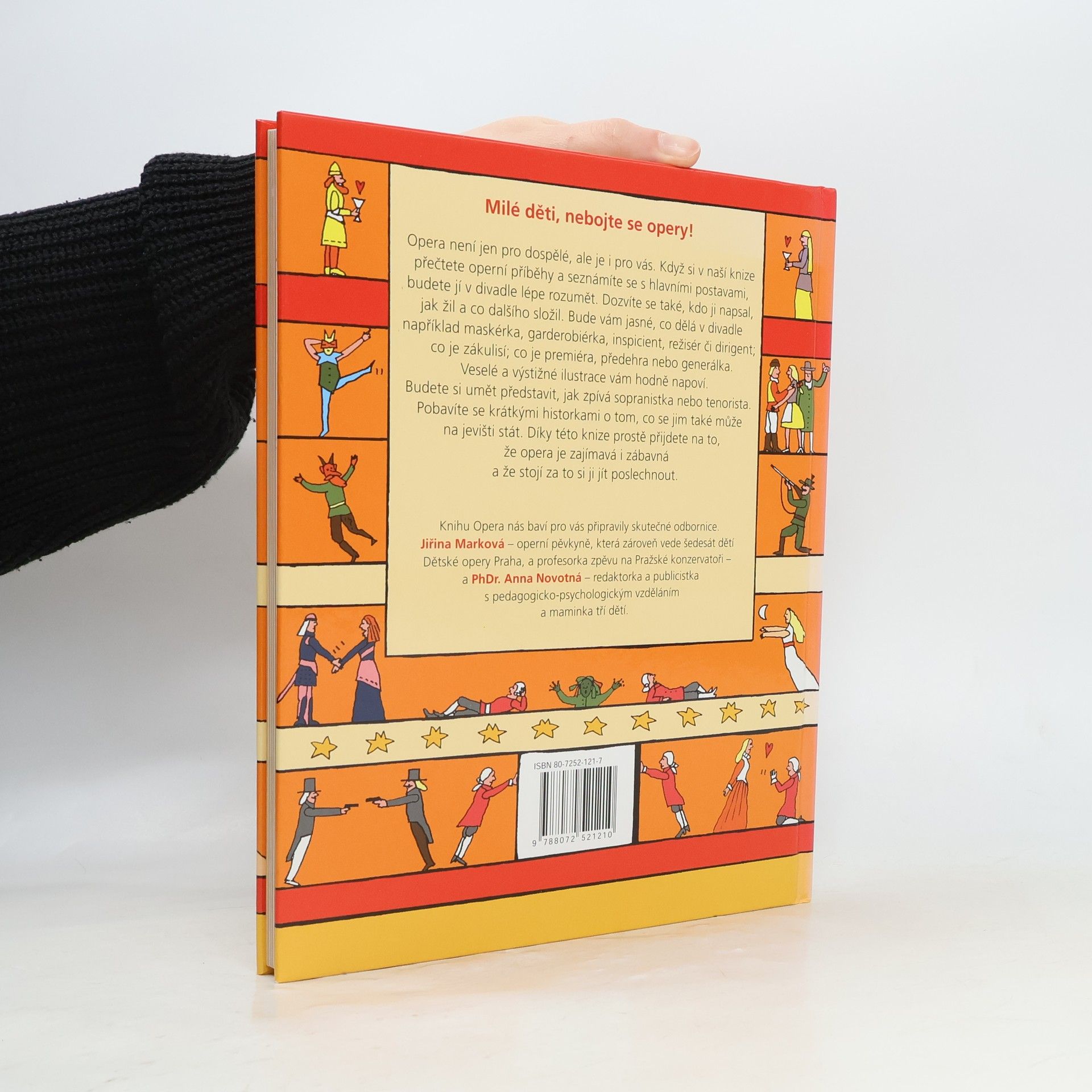 Milé děti, nebojte se opery! Opera není jen pro dospělé ale je i pro vás. Když si v této knize přečtete operní příběhy a seznámíte se s hlavními postavami, budete jí v divadle lépe rozumět. Dozvíte se také, kdo ji napsal, jak žil a co dalšího složil. Bude vám jasné, co dělá v divadle například maskérka, garderobiérka, inspicient režisér či dirigent, co je zákulisí; co je premiéra, předehra nebo generálka. Veselé a výstižné ilustrace vám hodně napoví. Budete si umět představit, jak zpívá sopranistka nebo tenorista. Pobavíte se krátkými historkami o tom, co se jim také může na jevišti stát. Díky této knize prostě přijdete na to, že opera je zajímavá i zábavná a že stojí za to si ji jít poslechnout. Knihu Opera nás baví pro vás připravily skutečné odbornice. Jiřina Marková - operní pěvkyně, která zároveň vede šedesát dětí Dětské opery Praha, a profesorka zpěvu na Pražské konzervatoři a PhDr. Anna Novotná - redaktorka a publicistka s pedagogicko-psychologickým vzděláním a maminka tří dětí. vydání věnoval sponzor!