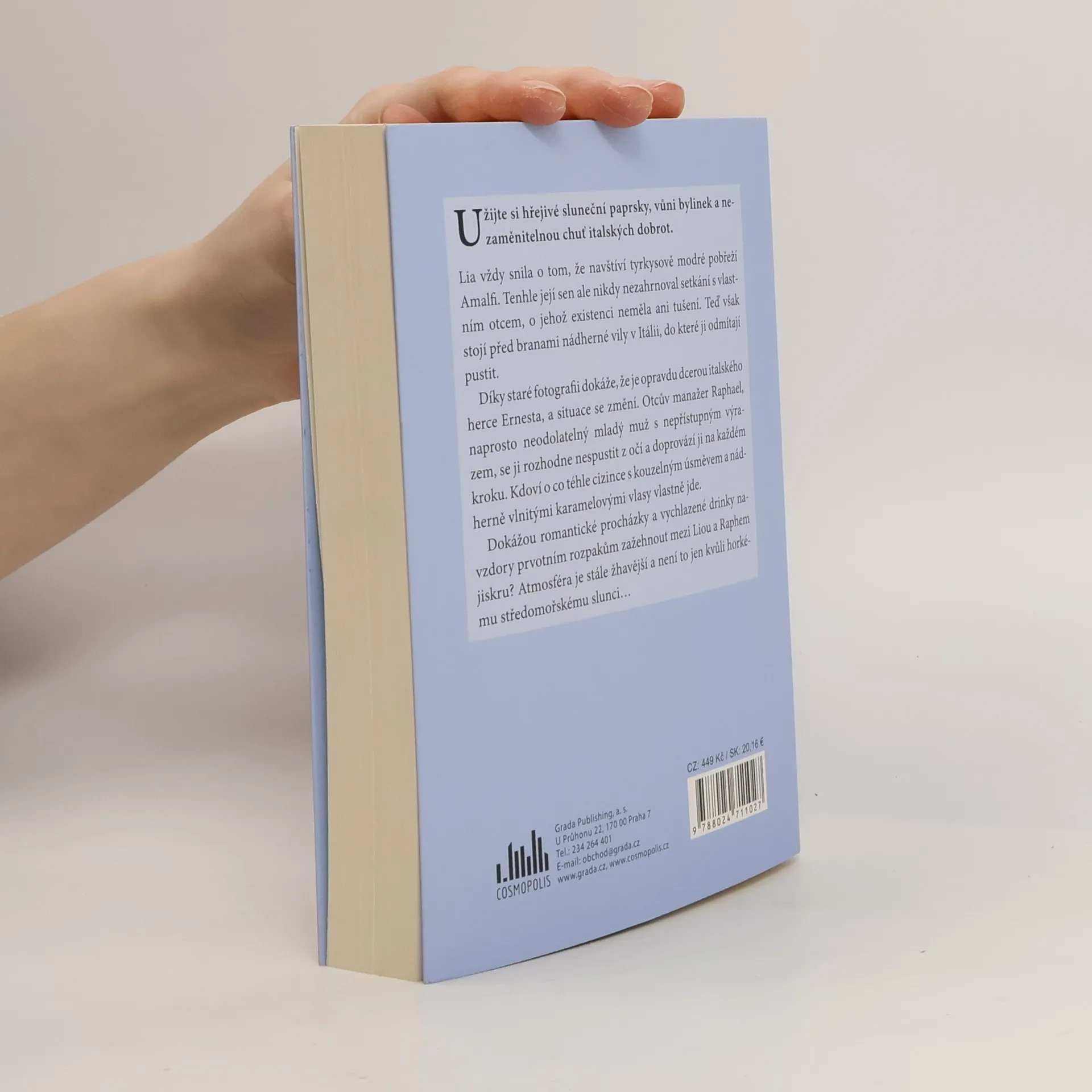 Lia vždy snila o tom, že navštíví tyrkysově modré pobřeží Amalfi. Tenhle její sen ale nikdy nezahrnoval setkání s vlastním otcem, o jehož existenci neměla ani tušení. Teď však stojí před branami nádherné vily v Itálii, do které ji odmítají pustit. Díky staré fotografii dokáže,že je opravdu dcerou italského herce Ernesta, a situace se změní. Otcův manažer Raphael, naprosto neodolatelný mladý muž s nepřístupným výrazem, se ji rozhodne nespustit z očí a doprovází ji na každém kroku. Kdoví o co téhle cizince s kouzelným úsměvem a nádherně vlnitými karamelovými vlasy vlastně jde. Dokážou romantické procházky a vychlazené drinky i přes počáteční rozpaky zažehnout mezi Liou a Raphem jiskru? Atmosféra je stále žhavější a není to jen kvůli horkému středomořskému slunci.