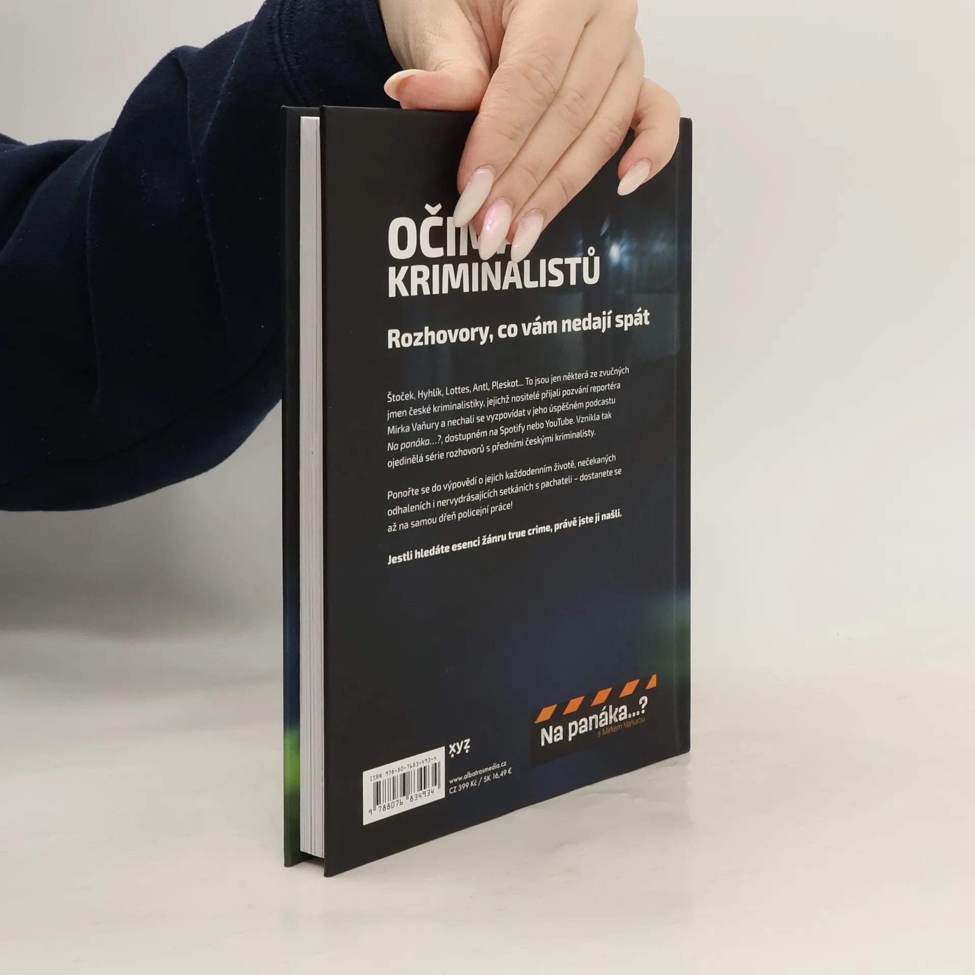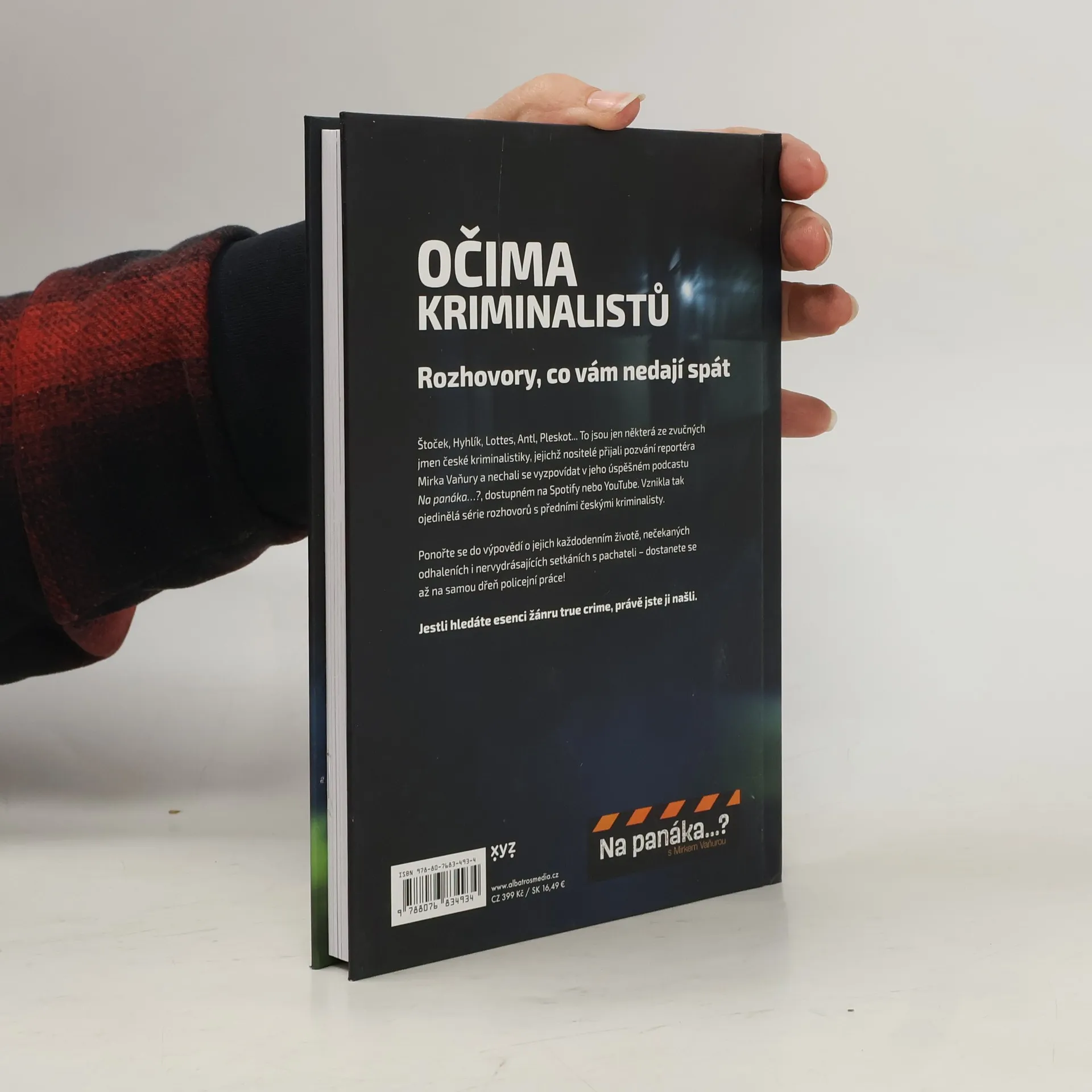 Na panáka s legendami české kriminalistiky. Rozhovory, co vám nedají spát. Štoček, Hyhlík, Lottes, Antl, Pleskot... To jsou jen některá ze zvučných jmen české kriminalistiky, jejichž nositelé přijali pozvání reportéra Mirka Vaňury a nechali se vyzpovídat v jeho úspěšném podcastu Na panáka? Vznikla tak ojedinělá série rozhovorů s předními českými kriminalisty. Ponořte se do výpovědí o jejich každodenním životě, nečekaných odhaleních i nervydrásajících setkáních s pachateli – dostanete se až na samou dřeň policejní práce! Jestli hledáte esenci žánru true crime, právě jste ji našli. Kniha Očima kriminalistů však tento žánr v mnohém přesahuje. Čtenář se mimo jiné dozví, jak se jednotliví respondenti staví k rozsáhlé ammnestii vyhlášené prezidentem Václavem Havlem na Nový rok 1990 a následnému rapidnímu nárůstu kriminality. Podobně výbušných témat se napříč rozhovory táhne několik, a ty tak ve svém celku podávají komplexní zprávu o srování předlistopadové a pozdější kriminalistiky. Mirek Vaňura využívá osobní známosti se zpovídanými legendami svých oborů k tomu, aby se mu otevřely víc, než bývá zvykem.