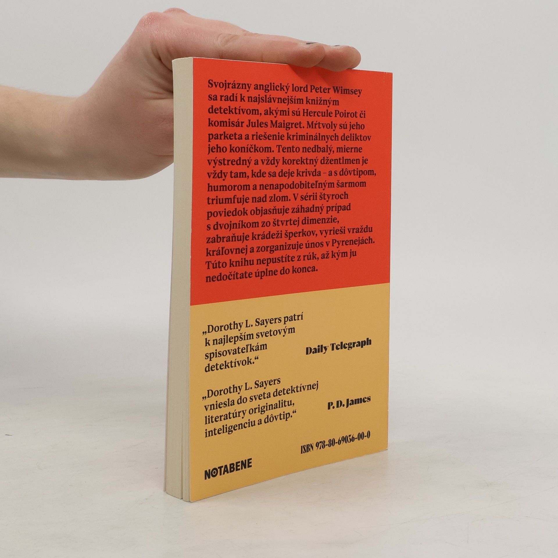 Svojrázny anglický lord Peter Wimsey sa radí k najslávnejším knižným detektívom, akými sú Hercule Poirot či komisár Jules Maigret. Mŕtvoly sú jeho parketa a riešenie kriminálnych deliktov jeho koníčkom. Tento nedbalý, mierne výstredný a vždy korektný džentlmen je vždy tam, kde sa deje krivda – a s dôvtipom, humorom a nenapodobiteľným šarmom triumfuje nad zlom. V sérii štyroch poviedok objasňuje záhadný prípad s dvojníkom zo štvrtej dimenzie, zabraňuje krádeži šperkov, vyrieši vraždu kráľovnej a zorganizuje únos v Pyrenejách. Túto knihu nepustíte z rúk, až kým ju nedočítate úplne do konca.Vo výbere sa nachádzajú štyri poviedky zo zbierky Hangman's Holiday.