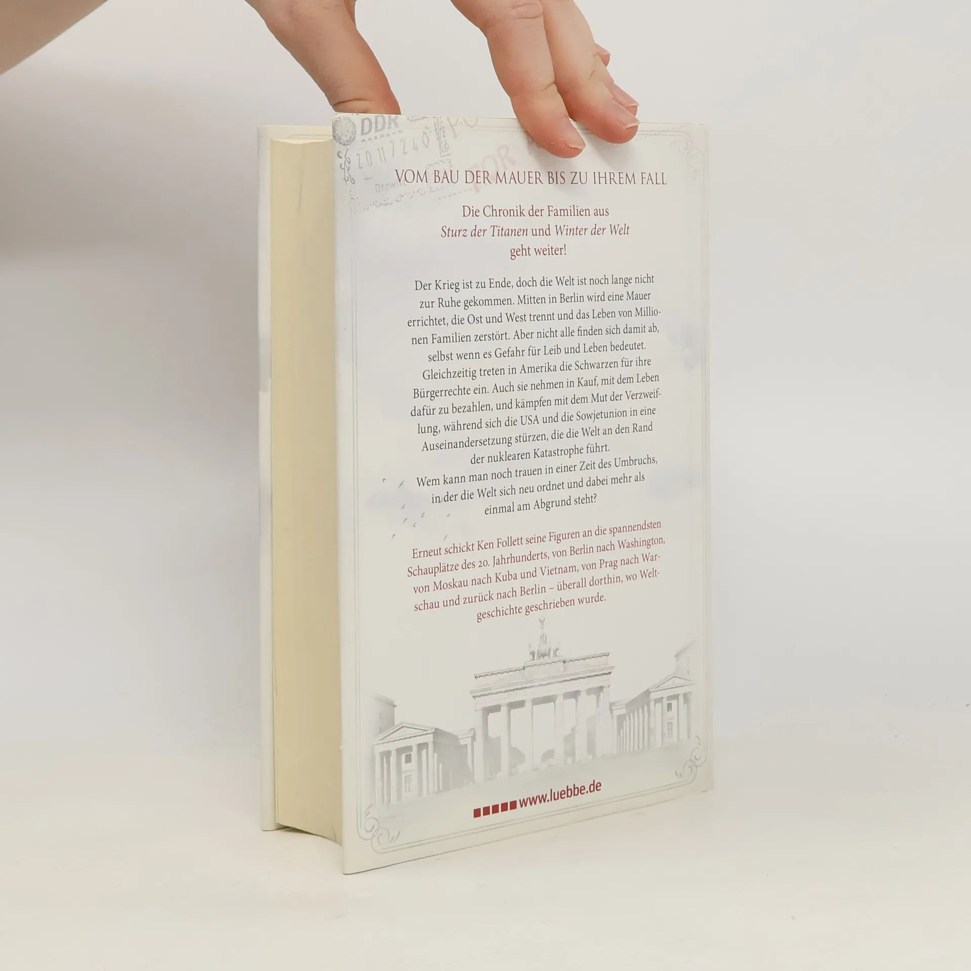 VOM BAU DER MAUER BIS ZU IHREM FALL erzählt die epische Familiensaga des Autors der Bestseller. In Ostberlin scheint das Leben von Rebecca Hoffmann in Ordnung, bis sie entdeckt, dass ihr Mann sie im Auftrag der Stasi bespitzelt. Ihr konfrontatives Handeln führt zu einem verhängnisvollen Fehler, der das Schicksal ihrer Familie für immer verändert. In den USA kämpft George Jakes, ein Vertrauter von Justizminister Robert Kennedy, hautnah gegen Rassismus und Ungerechtigkeit und erlebt die Herausforderungen, die mit seiner Hautfarbe verbunden sind. Cameron Dewar, ein Republikaner und CIA-Agent, navigiert durch eine Welt voller Täuschung und Intrigen, während Dimka Dworkin, Berater von Nikita Chruschtschow, in den Konflikt zwischen Sowjetunion und USA verwickelt wird, der die Welt an den Rand des Atomkriegs führt. Seine Schwester Tanja, Journalistin, verfolgt die Ereignisse an den Brennpunkten von Moskau über Kuba bis nach Prag und Warschau. Der Roman verknüpft die Schicksale von Menschen aus Ost und West vor dem Hintergrund der politischen Umwälzungen von den frühen Sechzigern bis zum Ende der Achtzigerjahre und bildet den packenden Abschluss von Ken Folletts Jahrhundert-Trilogie.