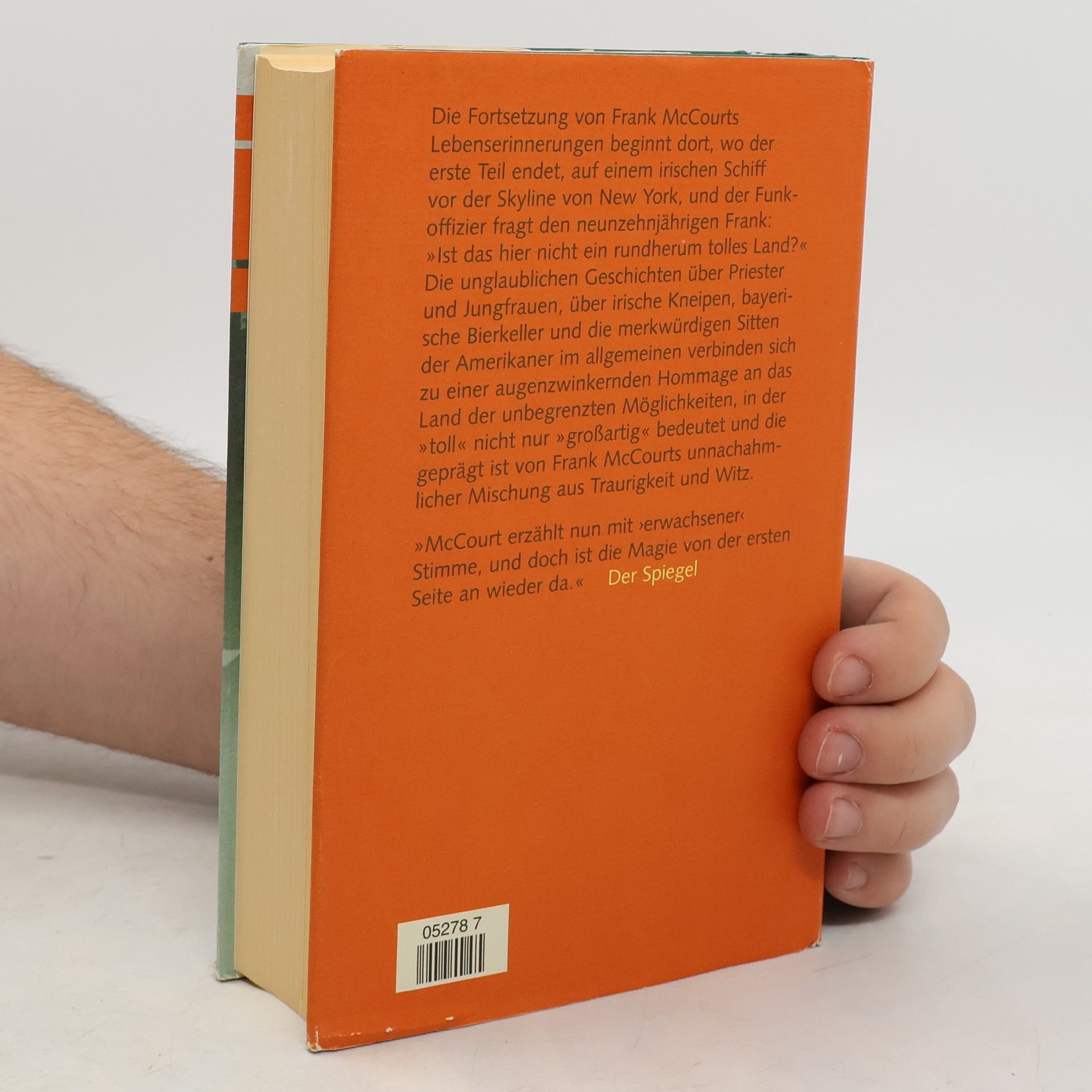 „‘Die Asche meiner Mutter‘ ist so gut – sie verdient eine Fortsetzung.“ So schrieb die New York Times über Frank McCourts Bestseller. Mit dem vorliegenden Buch erfüllte der Autor nicht nur den Wunsch seines Rezensenten, sondern auch die Hoffnungen der Millionen von begeisterten Lesern und schrieb seine Geschichte fort. „Ein rundherum tolles Land“ beginnt dort, wo der erste Teil endet: als Frank McCourt mit 19 Jahren an Bord eines irischen Schiffes nach Amerika kommt und nichts hat als die Hoffnung auf eine bessere Zukunft. Arm, mit schlechten Zähnen und entzündeten Augen, ohne jede nennenswerte Ausbildung, erreicht er das Land seiner Träume – und muss feststellen, dass er mit seinem Aussehen und seinem irischen Akzent ein Nichts ist. Wie er sich trotz aller Widrigkeiten einen Platz im Leben erkämpft, einen Platz „auf dem Bindestrich von Irisch-Amerika“, berichtet der große Erzähler McCourt in seiner unnachahmlichen Mischung aus Traurigkeit und Witz. Seine unglaublichen Geschichten über Priester und Jungfrauen, über irische Kneipen, bayrische Bierkeller und die merkwürdigen Sitten der Amerikaner im Allgemeinen verbinden sich zu einer augenzwinkernden Hommage an das Land der unbegrenzten Möglichkeiten, in der „toll“ nicht nur „großartig“ bedeutet.