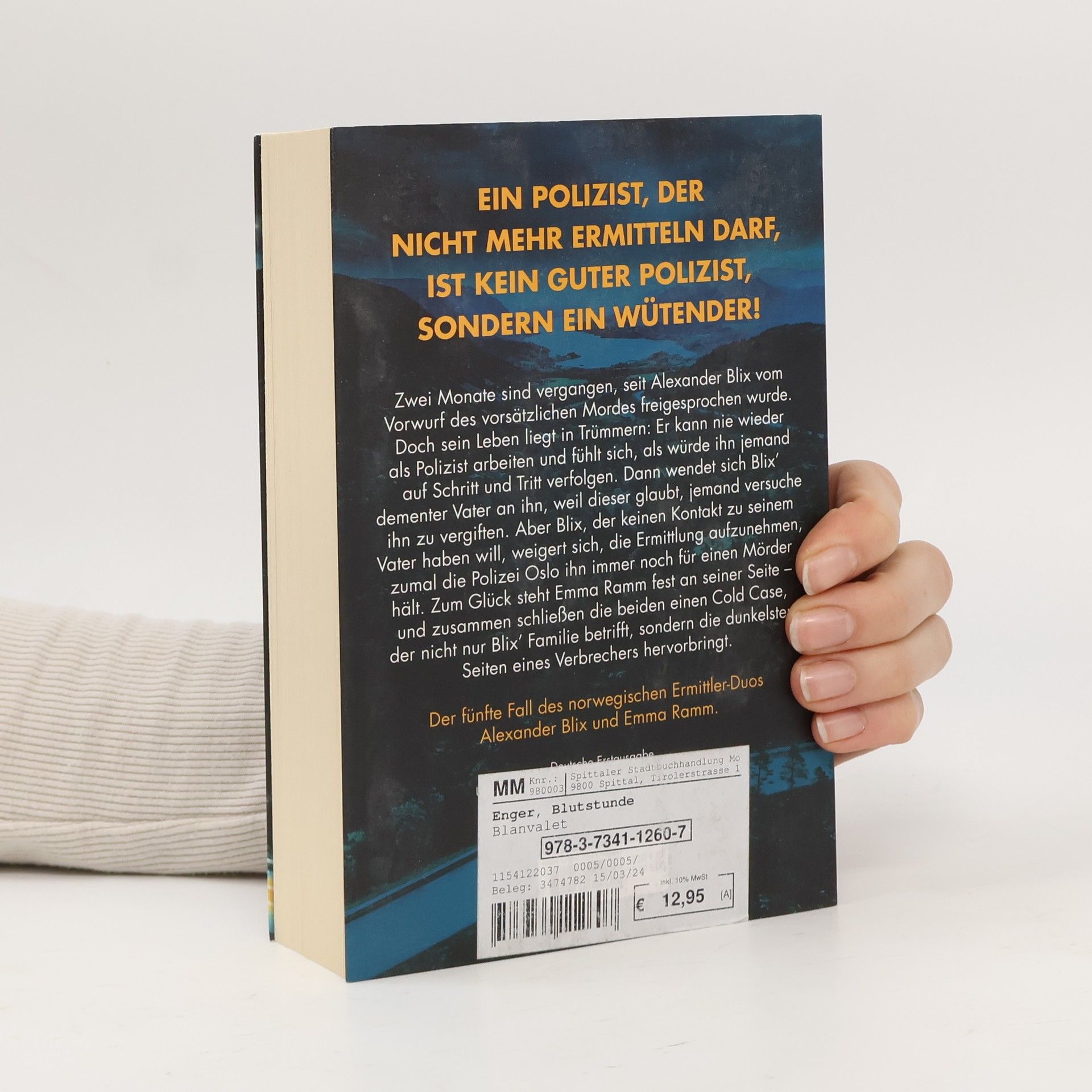 Ein Polizist, der nicht mehr ermitteln darf, ist kein guter Polizist, sondern ein wütender! Band 5 der SPIEGEL-Bestseller-Reihe aus Norwegen. Zwei Monate sind vergangen, seit Alexander Blix vom Vorwurf des vorsätzlichen Mordes freigesprochen wurde. Doch sein Leben liegt in Trümmern: Er kann nie wieder als Polizist arbeiten und fühlt sich, als würde ihn jemand auf Schritt und Tritt verfolgen. Dann wendet sich Blix' dementer Vater an ihn, weil dieser glaubt, jemand versuche, ihn zu vergiften. Aber Blix, der keinen Kontakt zu seinem Vater haben will, weigert sich, die Ermittlung aufzunehmen, zumal die Polizei Oslo ihn immer noch für einen Mörder hält. Zum Glück steht Emma Ramm fest an seiner Seite – und zusammen schließen die beiden einen Cold Case, der nicht nur Blix' Familie betrifft, sondern die dunkelsten Seiten eines Verbrechers hervorbringt. Alle Fälle der norwegischen Platz-1-Bestseller-Serie: Blutzahl Blutnebel Bluttat Blutnacht Blutstunde