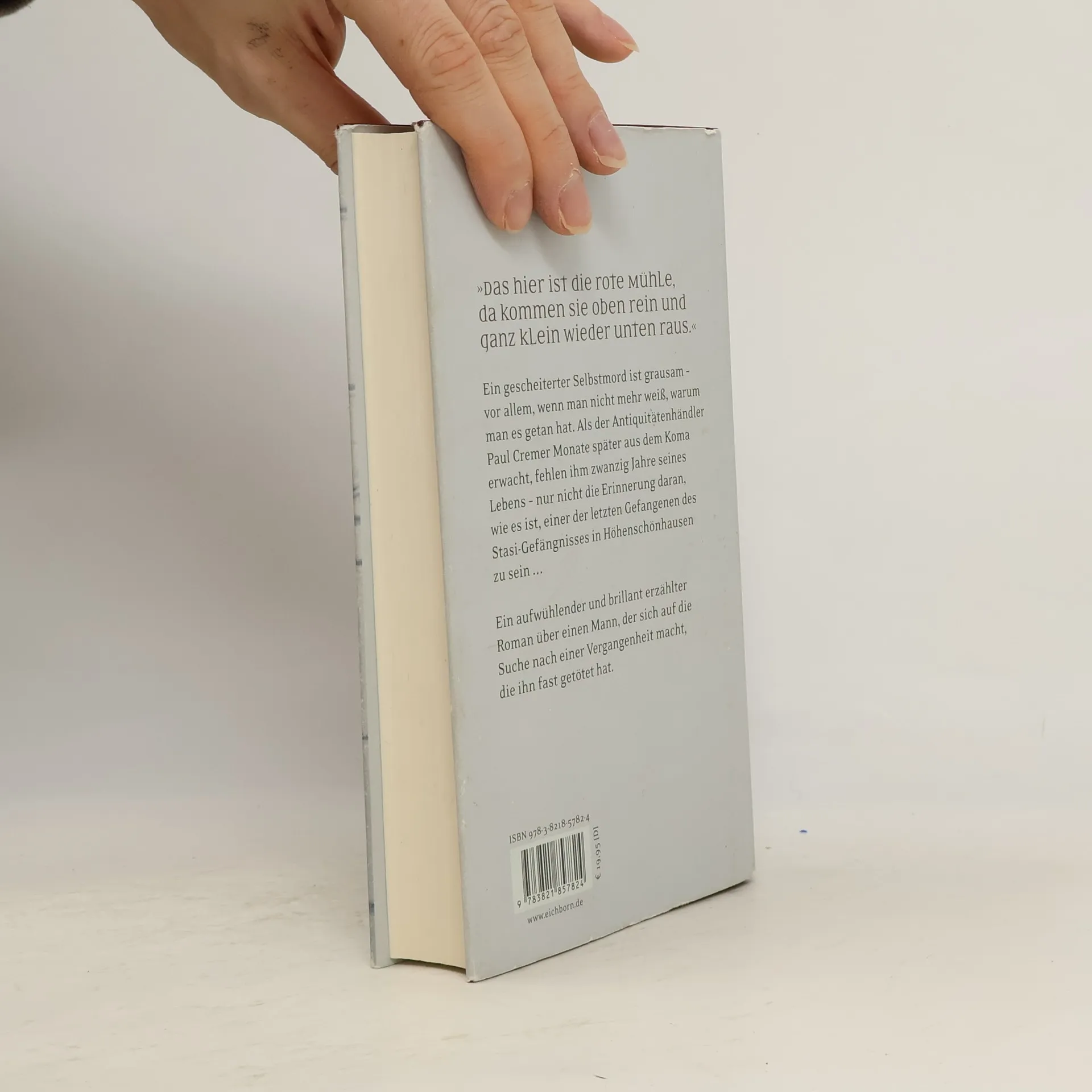 'Das hier ist die rote Mühle, da kommen Sie oben rein und ganz klein wieder unten raus.' Irgendwo am Rande des Schwarzwalds wird der Antiquitätenhändler Paul Cremer mit einer Kugel im Kopf aufgefunden. Doch wie durch ein Wunder überlebt er den Selbstmordversuch und wird in mehreren Operationen gesundheitlich wiederhergestellt. Als er aus dem Koma erwacht, ist er davon überzeugt, 22 Jahre alt zu sein und im Ost-Berlin des Jahres 1989 zu leben, genauer: im Stasi-Gefängnis Hohenschönhausen. Er erkennt weder seine Ehefrau noch seinen Sohn, und nur mit Mühe ist er davon zu überzeugen, dass es inzwischen den Staat, der ihn willkürlich festgenommen hatte, nicht mehr gibt. In einem schmerzhaften Erinnerungsprozess nähert sich Cremer mit Hilfe eines Neuropsychologen der verloren gegangenen Lebensgeschichte wieder an und entdeckt, wer sein Leben zerstört hat. Ein fast erfolgreicher Selbstmord ist grausam - vor allem, wenn man nicht mehr weiß, warum man es getan hat. Marc Buhls faszinierender Roman über einen Mann, der sich auf die Suche nach seiner Vergangenheit macht.