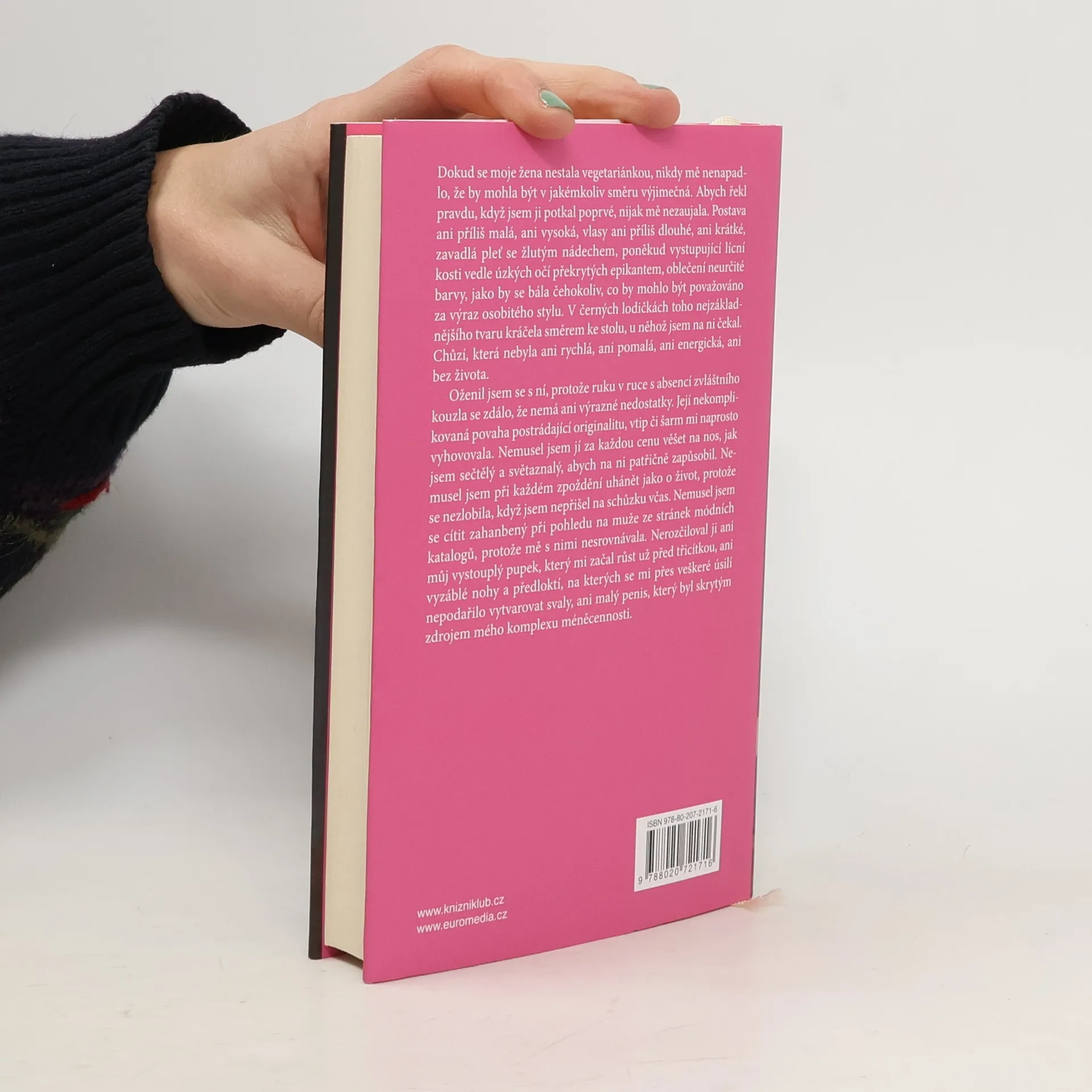Ten pocit syrového masa rozžvýkaného mezi mými zuby. Jonghje se jednoho dne probudí z krvavé noční můry a její život se začne dramaticky měnit. Ze všeho nejdřív přestane jíst maso. Ovšem v dravé patriarchální společnosti její náhlé vegetariánství a zejména neoblomný postoj, s jakým se vzepře svému muži i rodině, představuje pro její okolí ohromný šok. Jihokorejská autorka získala za román roku 2016 ocenění Man Booker International.