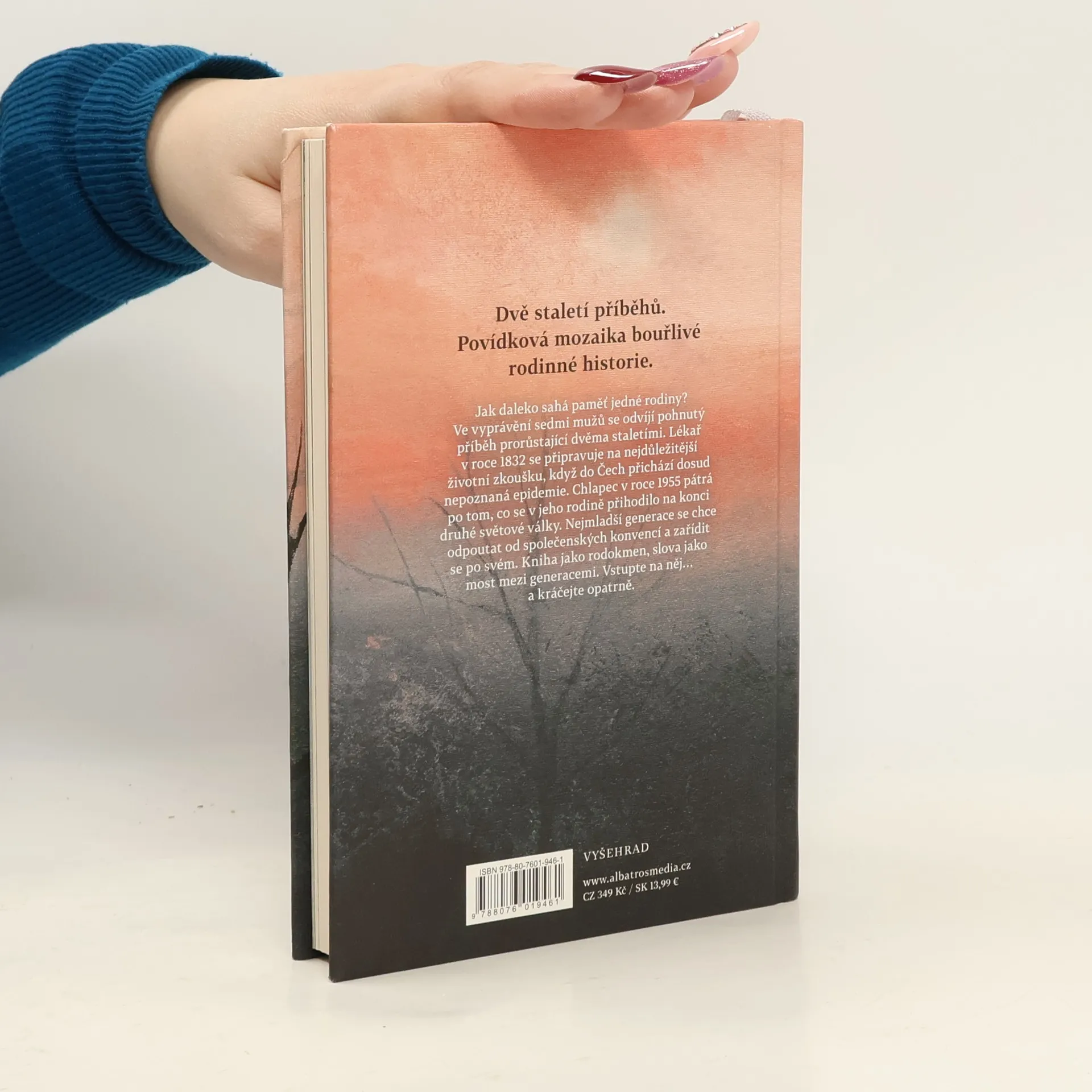 Dvě staletí příběhů. Povídková mozaika bouřlivé rodinné historie. Jak daleko sahá paměť jedné rodiny? Ve vyprávění sedmi mužů se odvíjí pohnutý příběh prorůstající dvěma staletími. Lékař v roce 1832 se připravuje na nejdůležitější životní zkoušku, když do Čech přichází dosud nepoznaná epidemie. Chlapec v roce 1955 pátrá po tom, co se v jeho rodině přihodilo na konci druhé světové války. Nejmladší generace se chce odpoutat od společenských konvencí a zařídit se po svém. Kniha jako rodokmen, slova jako most mezi generacemi. Vstupte na něj… a kráčejte opatrně.