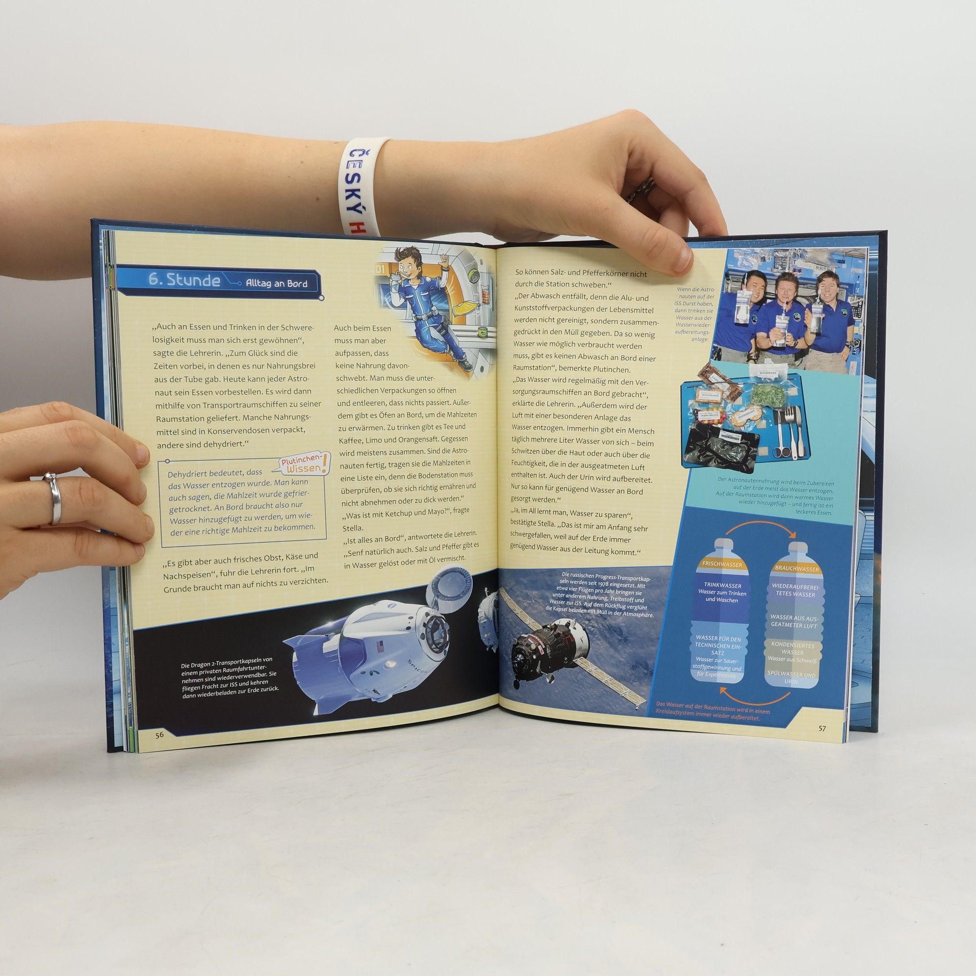 Warum heißt das Raumschiff eigentlich Raumschiff? Was ist ein Rückstoßantrieb? Und wie sieht ein ganz normaler Tag im Leben eines Astronauten aus? Auch wenn der kleine Major Tom und seine Astronautenfreundin Stella nicht auf der Erde leben – zur Schule müssen sie trotzdem. In den Unterrichtseinheiten im Schulmodul des Space Camp 1, auf der Bodenstation oder bei Expeditionen lernen sie alles, was rund um Raumfahrt wichtig ist. Die kluge Roboterkatze Plutinchen hilft mit anschaulichen Erklärungen, wenn es gar zu kompliziert wird. Alles Fans des kleinen Major Tom finden in diesem Kindersachbuch spannend präsentiertes Wissen rund um das Thema Raumfahrt mit vielen Fotos, Illustrationen und Ideen für Experimente.