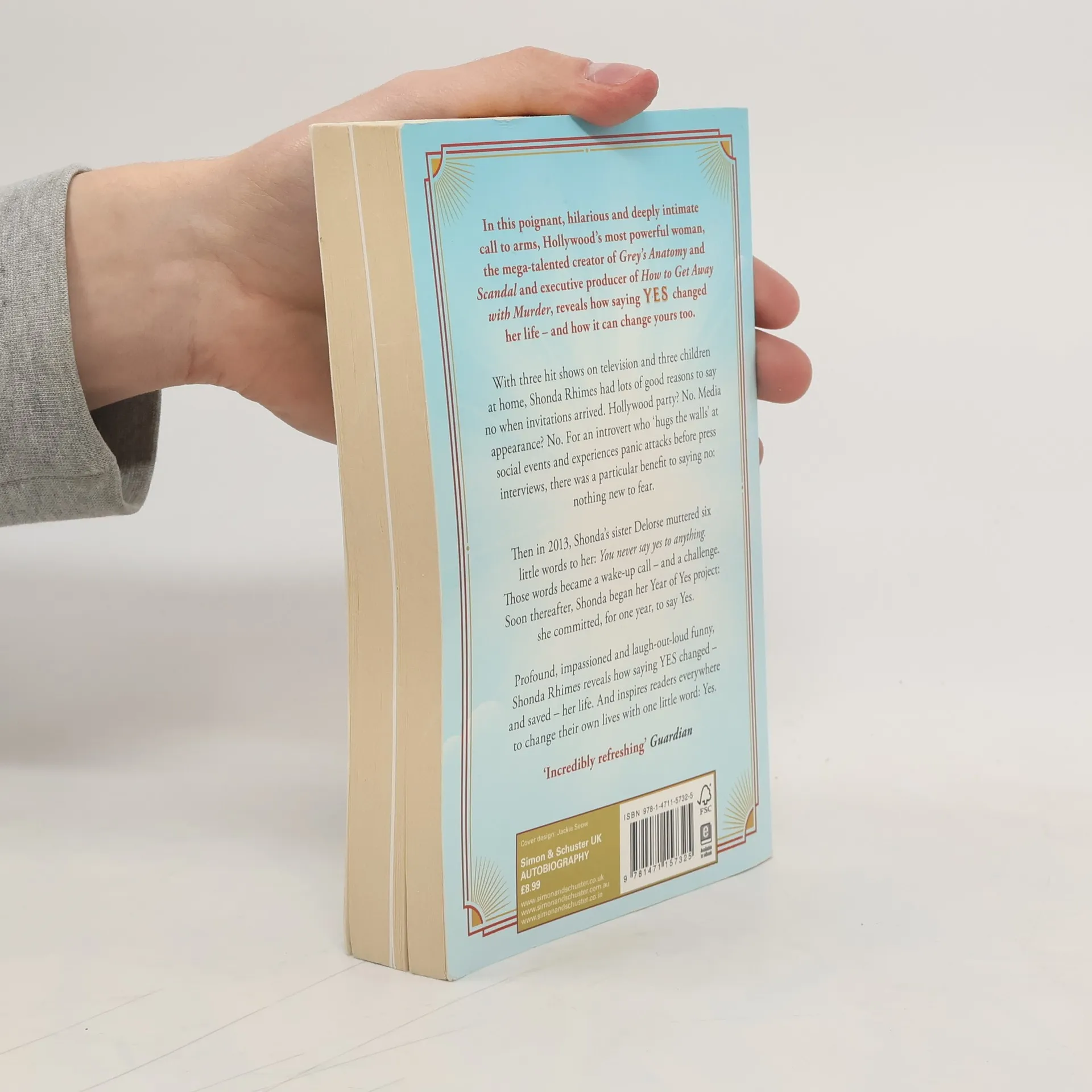 In this poignant, hilarious and deeply intimate call to arms, Hollywood's most powerful woman, the mega-talented creator of Grey's Anatomy and Scandal and executive producer of Bridgerton, For the People and How to Get Away with Murder , reveals how saying YES changed her life - and how it can change yours too. With three hit shows on television and three children at home, Shonda Rhimes had lots of good reasons to say no when invitations arrived. Hollywood party? No. Speaking engagement? No. Media appearances? No. And to an introvert like Shonda, who describes herself as 'hugging the walls' at social events and experiencing panic attacks before press interviews, there was a particular benefit to saying no: nothing new to fear. Then came Thanksgiving 2013, when Shonda's sister Delorse muttered six little words at her: You never say yes to anything. Profound, impassioned and laugh-out-loud funny, in Year of Yes Shonda Rhimes reveals how saying YES changed - and saved - her life. And inspires readers everywhere to change their own lives with one little word: Yes.