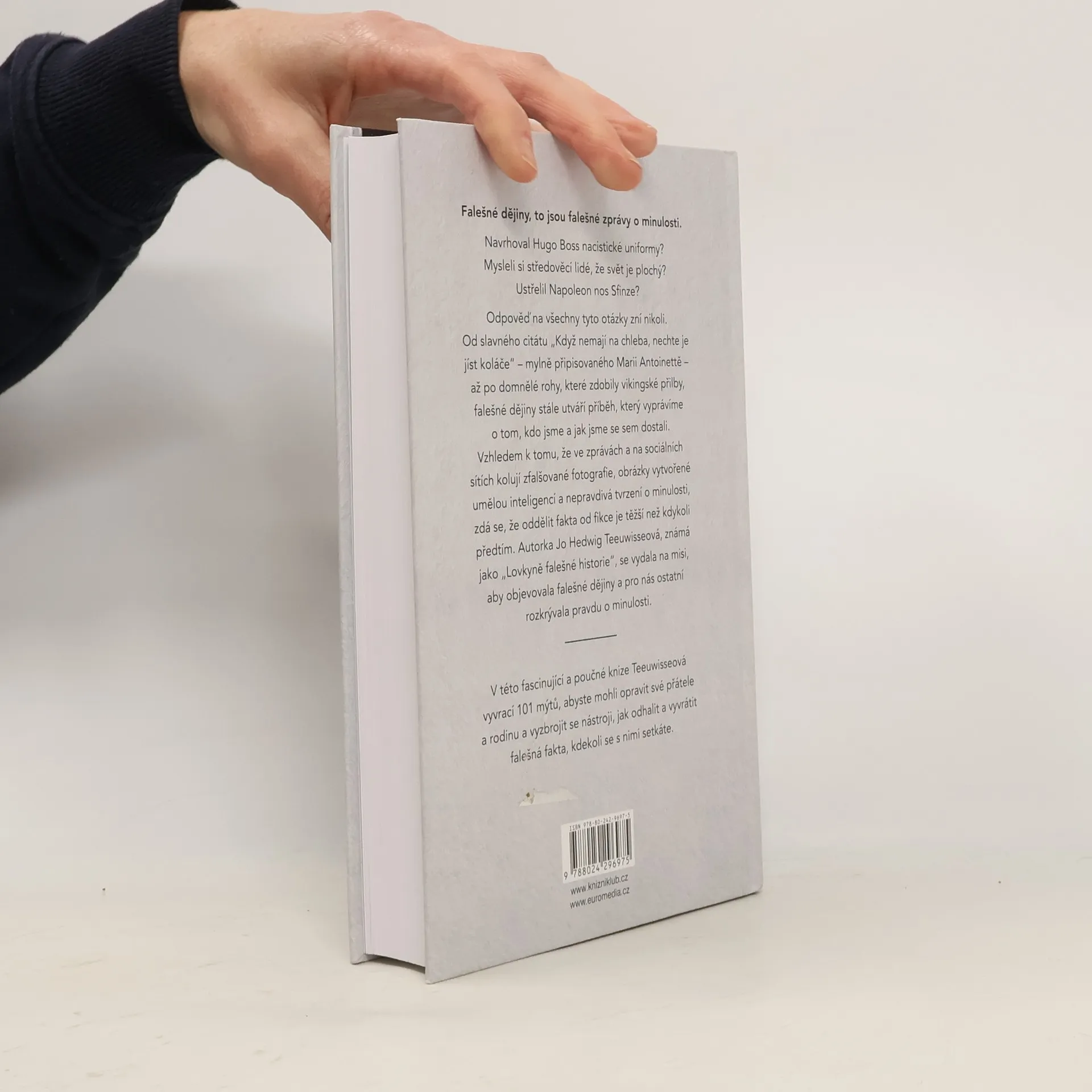 Fake historie, to jsou falešné zprávy o minulosti. Navrhoval Hugo Boss nacistické uniformy? Mysleli si středověcí lidé, že svět je plochý? Ustřelil Napoleon nos Sfinze? Odpověď na všechny tyto otázky zní nikoli. Od slavného citátu „Když nemají na chleba, nechte je jíst koláče“ – mylně připisovaného Marii Antoinettě – až po domnělé rohy, které zdobily vikingské přilby, falešná historie stále utváří příběh, který vyprávíme o tom, kdo jsme a jak jsme se sem dostali. Vzhledem k tomu, že ve zprávách a na sociálních sítích kolují zfalšované fotografie, obrázky vytvořené umělou inteligencí a nepravdivá tvrzení o minulosti, zdá se, že oddělit fakta od fikce je těžší než kdykoli předtím. Autorka Jo Hedwig Teeuwisseová, známá jako „Lovkyně falešné historie“, se vydala na misi, aby objevovala falešnou historii a pro nás ostatní rozkrývala pravdu o minulosti.