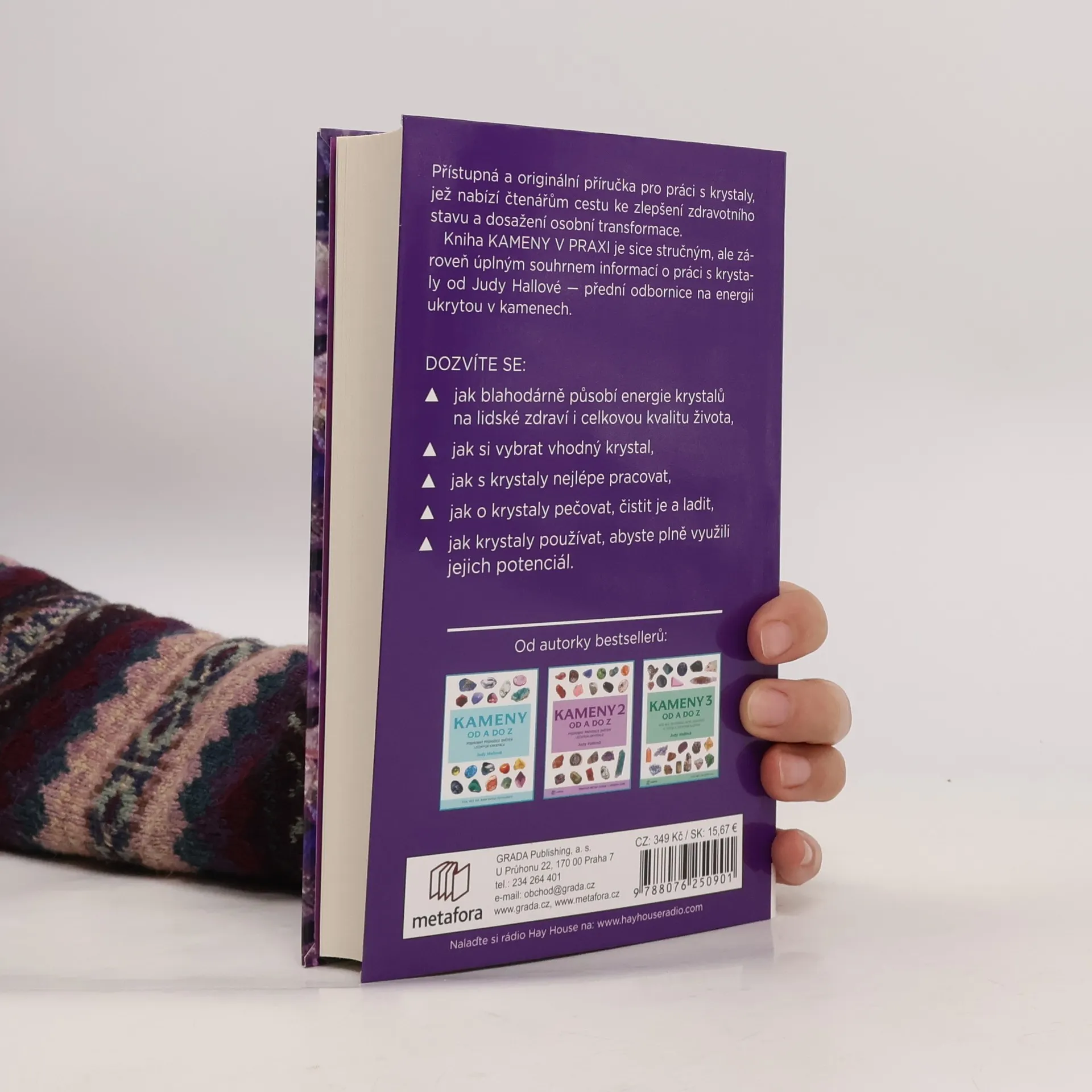 Judy Hallová na stránkách této knihy nabízí souhrn svých znalostí, což z publikace činí ideálního průvodce pro práci s krystaly, která je díky přístupnému a srozumitelnému výkladu vhodná i pro úplného začátečníka. Čtenáři se v této knize dozvědí komplexní informace o blahodárném působení energie krystalů na lidské zdraví i na celkovou kvalitu lidského života. Judy Hallová vysvětluje způsobem pochopitelným i pro začátečníky, jak s krystaly nejlépe pracovat, jak si vybrat vhodný krystal pro individuální použití, jak ho před zahájením práce očistit, jak kámen nabít energií a jak ho naladit. Kniha KAMENY V PRAXI je sice stručným, ale zároveň úplným souhrnem informací o práci s krystaly od přední odbornice na energii ukrytou v kamenech, která o hloubce svých znalostí již v minulosti přesvědčila čtenáře předchozích úspěšných knižních titulů.