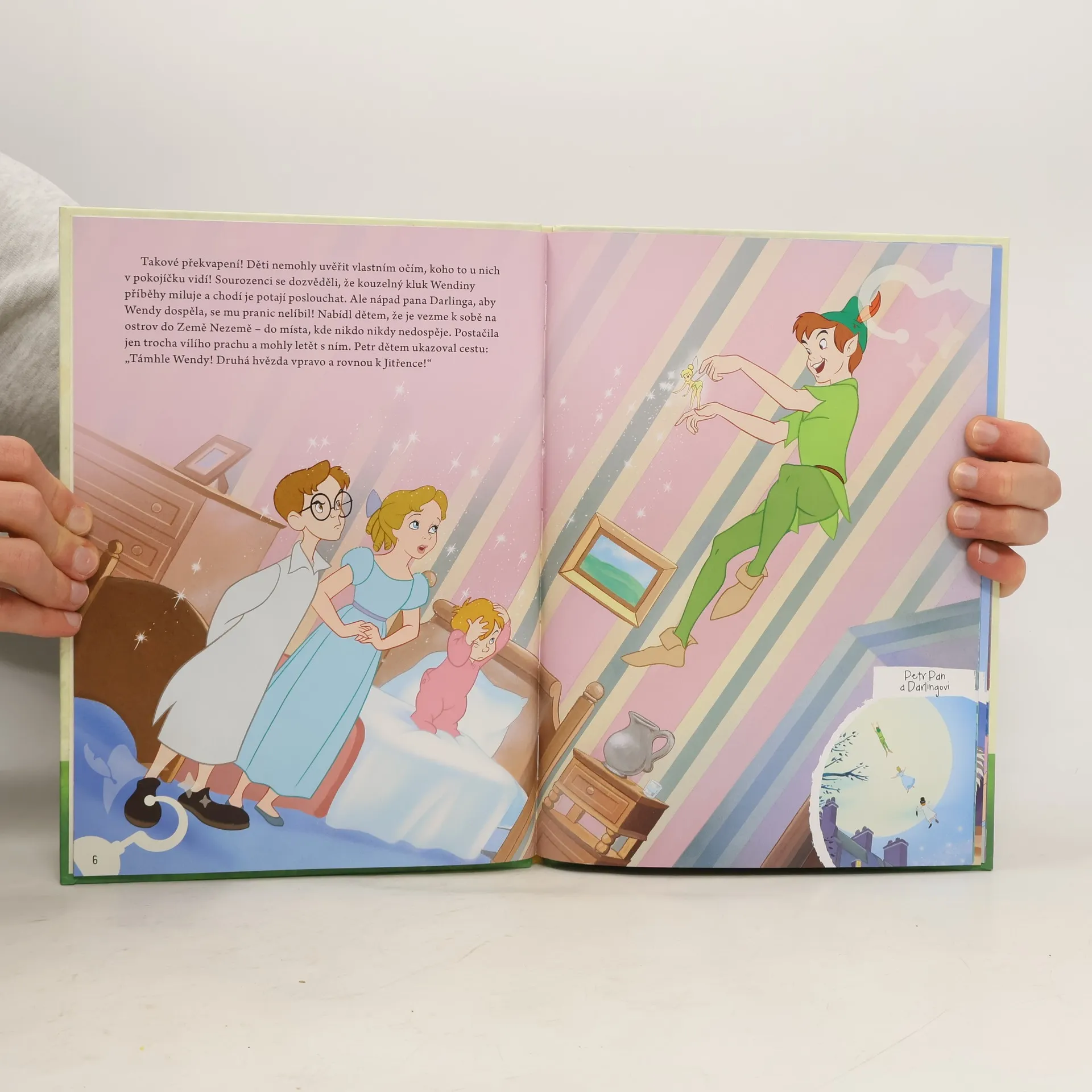 V Londýně žila dívka jménem Wendy Darlingová, která měla bujonu představivost. Vždycky před spaním vyprávěla dvěma mladším bratrům, Johnovi a Michaelovi, o úžasných dobrodružstvích Petra Pana - kouzelného chlapce, který uměl létat.