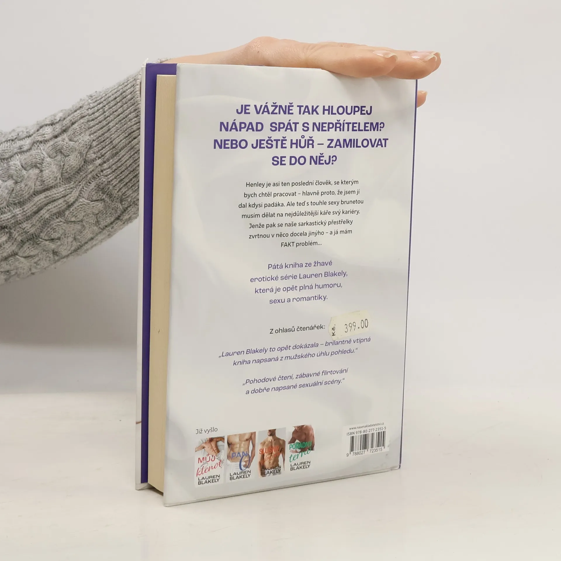 Pojďme si to říct narovinu, dámy. Dobrej chlap se dost podobá dobrýmu autu. Chcete krásný tělo a motor, kterej krásně vrní a taky špičkovej výkon pod peřinou teda pod kapotou. Chcete si přece užít nezapomenutelnou, divokou jízdu. Jsem vám k službám, vždy připraven. A vydržím celou noc. Jenže když se v mým životě objevila jedna nádherná brunetka, všechny moje plány se sesypaly jako domeček z karet. Ta holka je ohnivá, talentovaná, krásná a já bych jí fakt moc rád ukázal, jak naladit motor tak, aby spokojeně předl. Problém je, že Henley je moje největší soupeřka, a navíc jsme se kdysi nerozešli tak úplně v dobrým. Teď spolu musíme pracovat na hodně důležitým projektu, kterej by mohl mojí firmě zajistit spoustu prémiové práce. Mám z toho dost zamotanou hlavu, protože nevím, jestli mě chce Henley nakopat do koulí, nebo mě prosit, abych jí pořádně vystříkal dutiny. Podezřele často na ni myslím a vůbec se v ní nevyznám. Je vážně tak hloupej nápad spát s nepřítelem? Nebo hůř – zamilovat se do nepřítele.