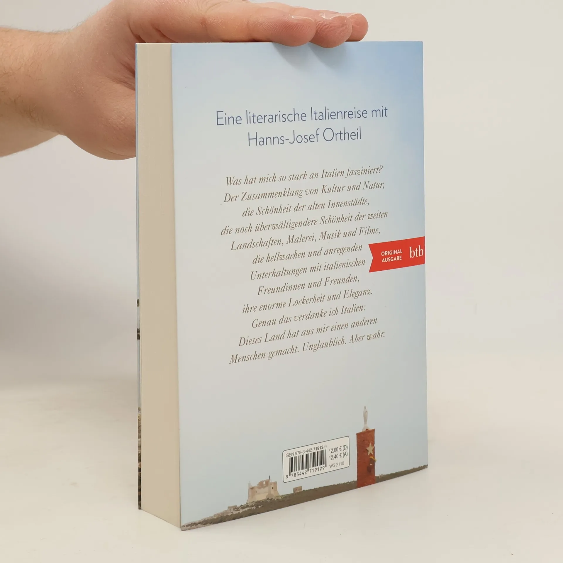 Eine literarische Italienreise mit Hanns-Josef Ortheil. Exklusiv im Taschenbuch. Hanns-Josef Ortheil hat in seinen Romanen und Essays immer wieder von Orten, Landschaften und Menschen Italiens erzählt. Er mischt sich in typische Szenen des Alltags ein, frühstückt „italienisch“, vertieft sich in Architektur, Kunst oder Musik eines Landes, das seit den frühen Siebziger Jahren seine „zweite Heimat“ ist. In dieser Anthologie mit Passagen aus seinen Werken nimmt der Leser an den Streifzügen des passionierten Italienliebhabers teil, begleitet ihn durch Venedig, Rom, Neapel oder Sizilien, wandert mit ihm an der adriatischen Meeresküste entlang und entdeckt die hohen Freuden der italienischen Küche.