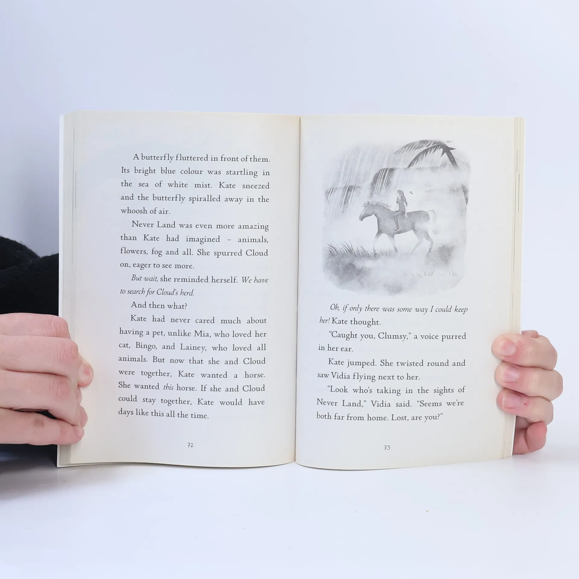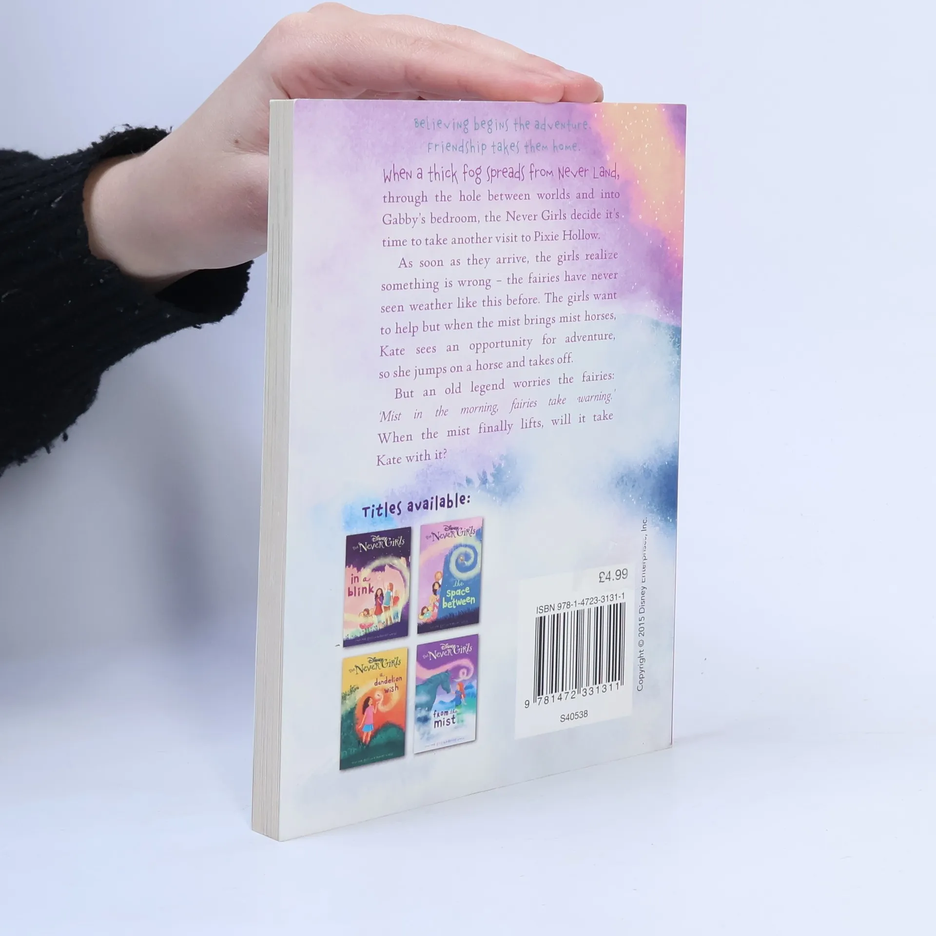 When a thick fog spreads from Never Land, through the hole between worlds and into Gabby's bedroom, the Never Girls decide it's time to take another visit to Pixie Hollow. As soon as they arrive, they realize the fairies are worried - they have never seen weather like this before. And when the mist brings mist horses, Kate sees an opportunity for adventure, so she jumps on a horse and takes off. But an old legend worries the fairies: 'Mist in the morning, fairies take warning.' When the mist finally lifts, will it take Kate with it?