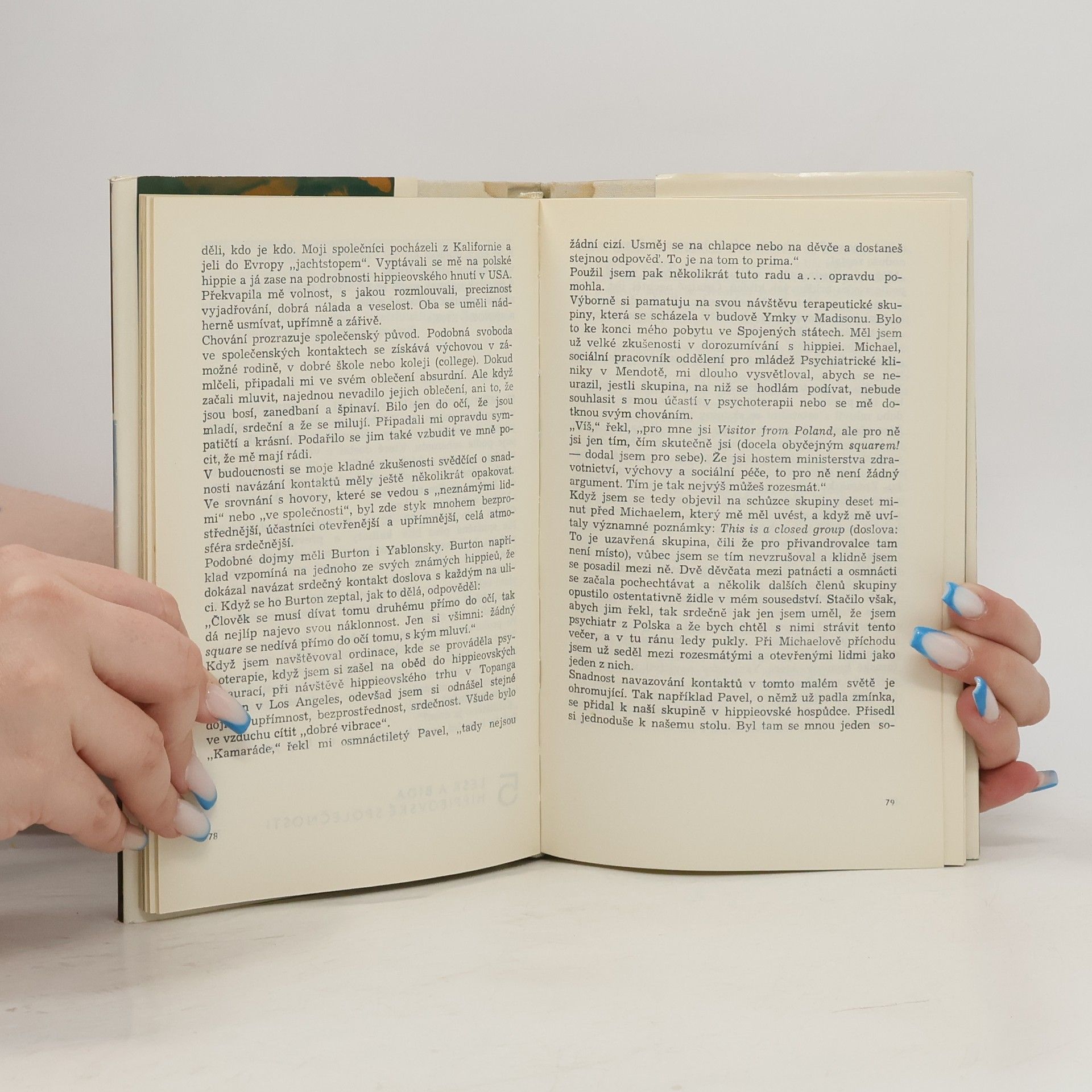 Tato kniha je věnována hnutí hippies. Nápad napsat tuto knihu o hippieích se zrodil při studijní cestě autora po psychiatrických ústavech USA. Popisuje toto hnutí s co největším realismem a zároveň na jeho rozboru osvětluje i ostatní aspekty americké skutečnosti, které obyčejně unikají naší pozornosti. Čtenáři se pak dostává do rukou cestopis trochu nekonvenční, cestopis sociologický, který je hlubokou sondou do života USA.
