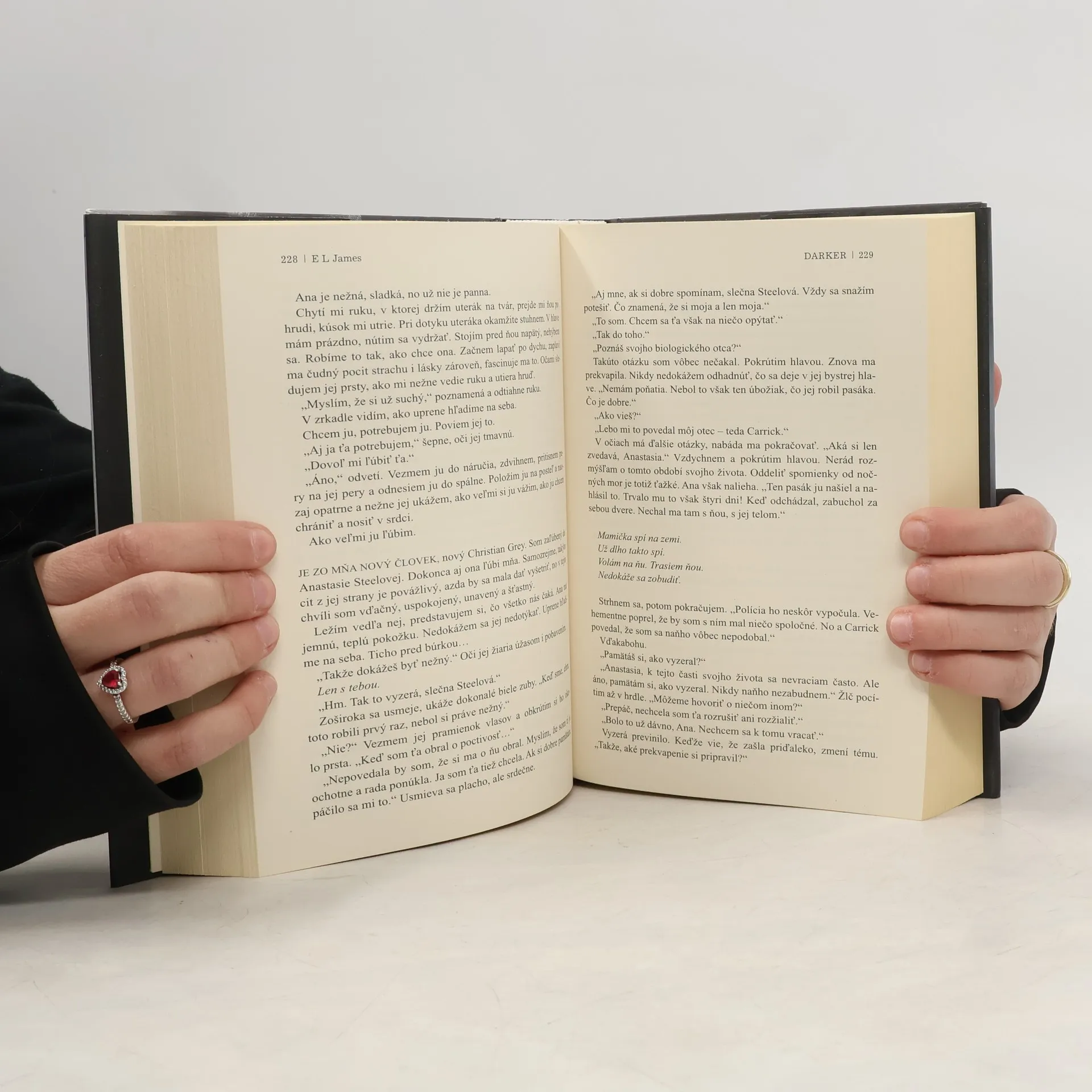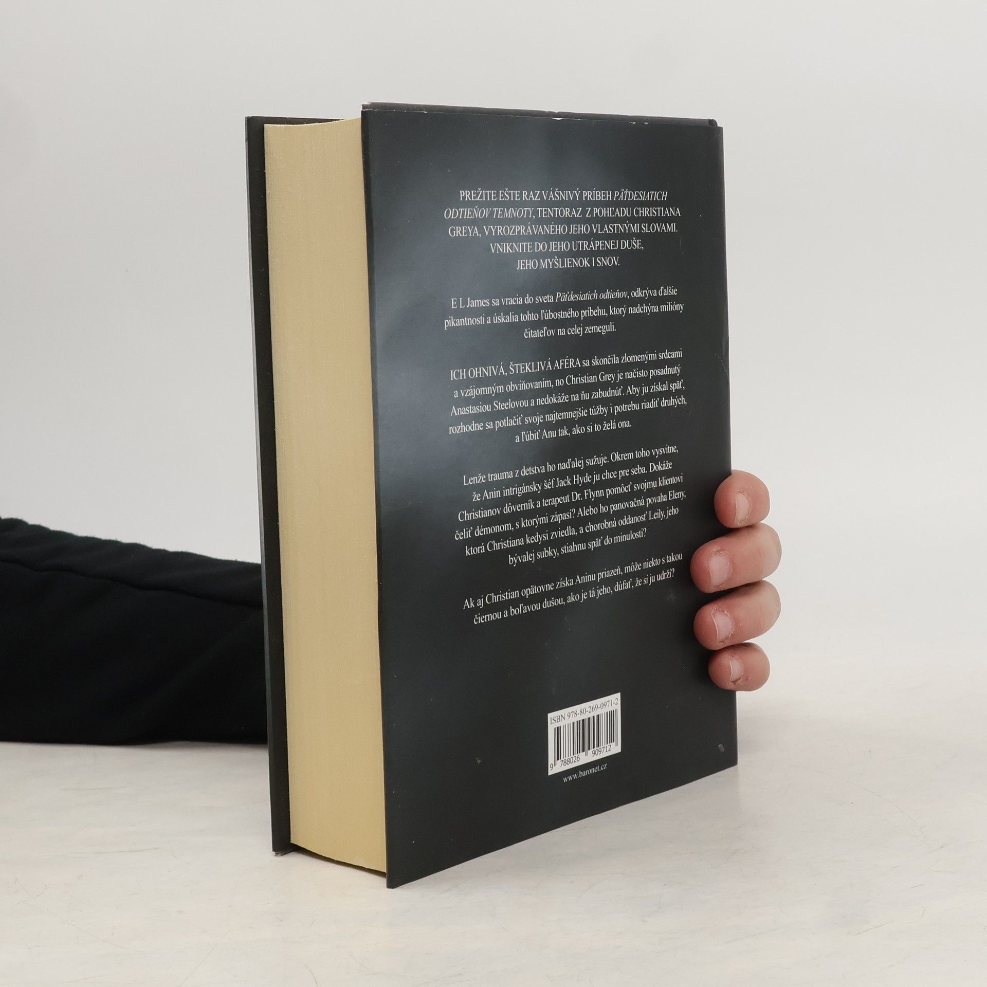 E L James sa vracia do sveta Päťdesiatich odtieňov, odkrýva ďalšie pikantnosti a úskalia tohto ľúbostného príbehu, ktorý nadchýna milióny čitateľov na celej zemeguli. ICH OHNIVÁ, ŠTEKLIVÁ AFÉRA sa skončila zlomenými srdcami a vzájomným obviňovaním, no Christian Grey je načisto posadnutý Anastasiou Steelovou a nedokáže na ňu zabudnúť. Aby ju získal späť, rozhodne sa potlačiť svoje najtemnejšie túžby i potrebu riadiť druhých, a ľúbiť Anu tak, ako si to želá ona. Lenže trauma z detstva ho naďalej sužuje. Okrem toho vysvitne, že Anin intrigánsky šéf Jack Hyde ju chce pre seba. Dokáže Christianov dôverník a terapeut Dr. Flynn pomôcť svojmu klientovi čeliť démonom, s ktorými zápasí? Alebo ho panovačná povaha Eleny, ktorá Christiana kedysi zviedla, a chorobná oddanosť Leily, jeho bývalej subky, stiahnu späť do minulosti? Ak aj Christian opätovne získa Aninu priazeň, môže niekto s takou čiernou a boľavou dušou, ako je tá jeho, dúfať, že si ju udrží?