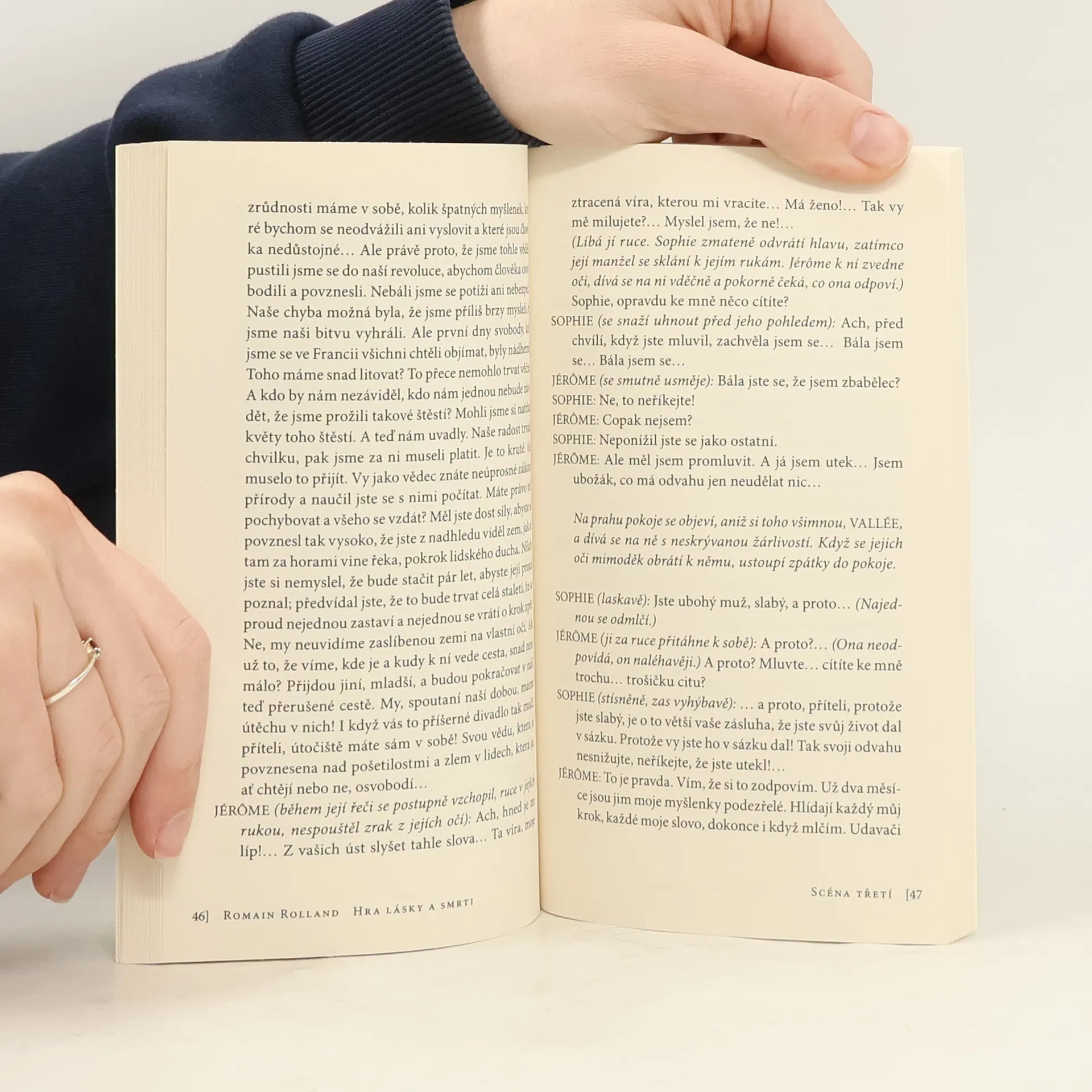 Jedno z nejpůsobivějších Rollandových dramat, které čerpá z pohnuté historie Francouzské revoluce, se odehrává v období, kdy její tvůrci a významní představitelé končí pod gilotinou. Touha po lepším světě a strach o život, provázejí postavy hry, které teď hledají cestu k přežití, vzdorují utrpení a vidí kolem sebe kolaboraci a udavačství motivované strachem o život. Na pozadí tíživé životní situace revoluce, která pohlcuje „své děti“ a láme charaktery, hrdinové hry bolestně hledají lásku. Kdo dokáže obětovat za lásku i cenu nejvyšší – vlastní život? V novém překladu Ivana Zmatlíka vychází jako 168. svazek edice D.