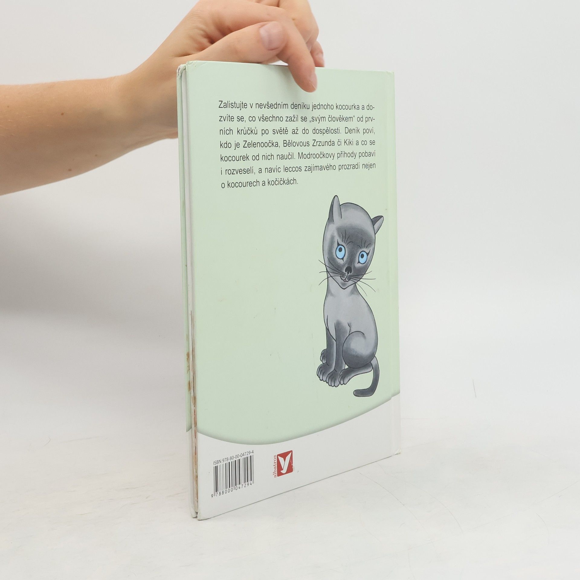 Hřejivé vyprávění malého kocourka o všem, co zažil se svým člověkem od prvních krůčků po světě až po chvíli, kdy se sám stal pyšným otcem čtyř koťátek. Modroočkův deník nám prozradí, kdo je Zelenoočka, Bělovous Zrzunda, Kiki a co se od nich náš kocourek naučil. Modroočkovy příhody pobaví a rozveselí, a navíc leccos zajímavého vypoví o vlastnostech a zvycích různých zvířátek. Mnohé z příhod už děti znají z rozhlasu i televize, nyní si o nich mohou pěkně číst v této půvabné knížce.