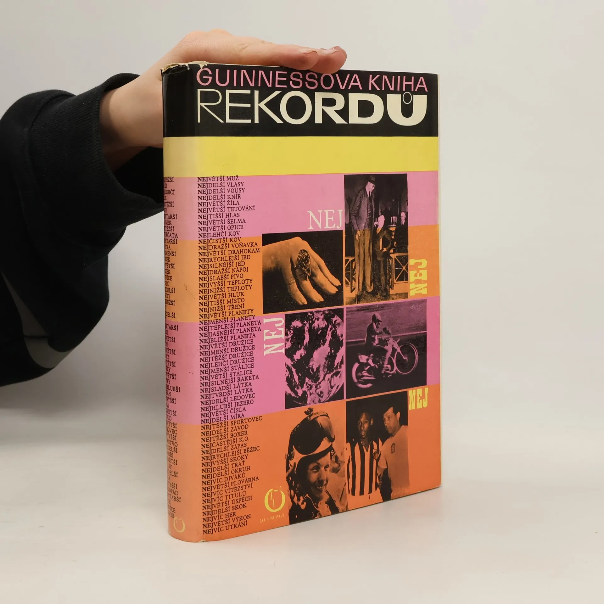 První české vydání Guinnessových rekordů. Obsahově pestrá encyklopedie podává přehled zajímavostí a kuriozit z nejrůznějších oborů. Ve dvanácti tématických kapitolách jsou zachyceny stovky rekordů i "rekordů" ze světa člověka i přírody, z dobývání kosmu, z oblasti vědy,umění, zábavy, techniky aj. Zdaleka nejobsáhlejší je kapitola o sportu a hrách, v níž jsou kromě všeobecných údajů o známých i méně známých druzích sportu zaznamenány i nejlepší dosažené sportovní výsledky.