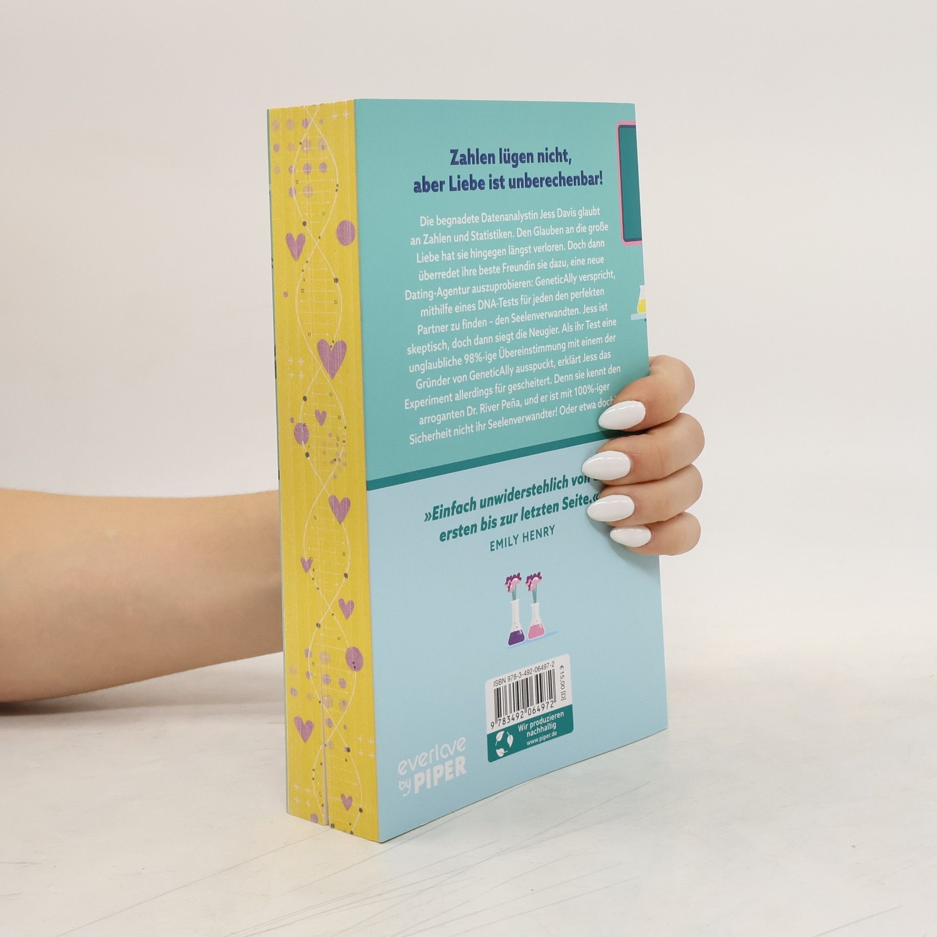 Zahlen lügen nicht, aber Liebe ist unberechenbar Die begnadete Datenanalystin Jess Davis glaubt an Zahlen und Statistiken. Den Glauben an die große Liebe hat sie längst verloren. Doch dann wird sie von ihrer besten Freundin dazu überredet, eine neue Dating-Agentur auszuprobieren, die wie für Jess gemacht scheint. GeneticAlly behauptet, mit Hilfe eines DNA-Tests für jeden den perfekten Partner zu finden – den Seelenverwandten. Jess steht den Versprechungen von GeneticAlly zunächst skeptisch gegenüber, doch dann siegt die Neugier. Als ihr Test aber eine unglaubliche 98%-ige Übereinstimmung mit einem der Gründer von GeneticAlly ausspuckt, erklärt Jess das Experiment für gescheitert. Denn sie kennt Dr. River Peña, und er ist mit 100%-iger Sicherheit nicht ihr Seelenverwandter! Oder etwa doch?