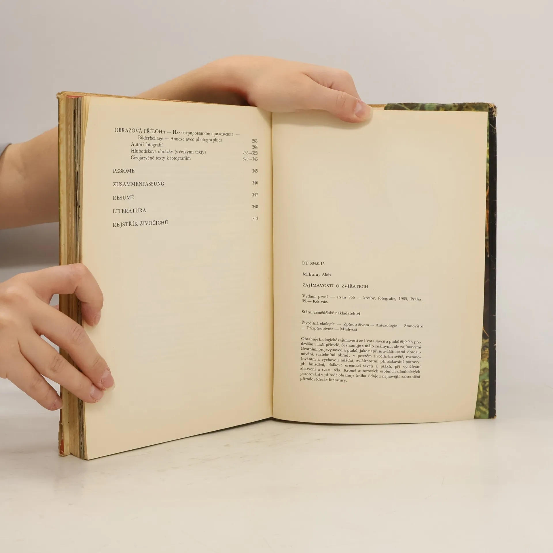 Přátelům přírody se dostává do rukou velmi poutavá kniha zajímavostí a novinek ze života savců a ptáků oživujících naši přírodu. Najdou zde stovky nejrůznějších, málo známých poznatků a zvláštností, setkají se tu s množstvím biologických podrobností, z nichž i při velké sečtělosti řadu neznali, a pobaví se výstižně popsanými mimořádnými projevy nejrůznějších živočichů. Čtenář se dále seznámí s mnoha novodobými názory, nahrazujícími názory zastaralé a chybné, a naučí se správně pohlížet na zvířata a jejich počínání. Bude upozorněn na přitažlivost pozorování života v přírodě, na jeho krásy a na nutnost přírodu chránit. Neméně poutavou částí knihy je i část ilustrační. Četné perokresby výklad účelně doplňují a pomáhají mu porozumět, přes 100 hlubotiskových obrázků spolu s barevnými fotografiemi na přebalu znázorňuje kolem jednoho sta různých druhů zvířat, žijících ve volnosti, v záběrech často velmi neobvyklých. Obrazová část vytváří s textovou částí jedinečný celek, který nejen pomůže čtenáři hlouběji poznat život v přírodě, ale také ho pobaví a naučí ho rozumět různým projevům zvířat.